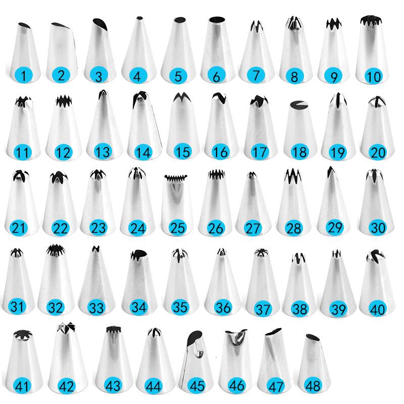 Bico para bolo de confeitaria 50 peças, adequado para saco de ordenha TPU, aço inoxidável, bico de flor de tamanho pequeno, ferramentas para assar biscoitos