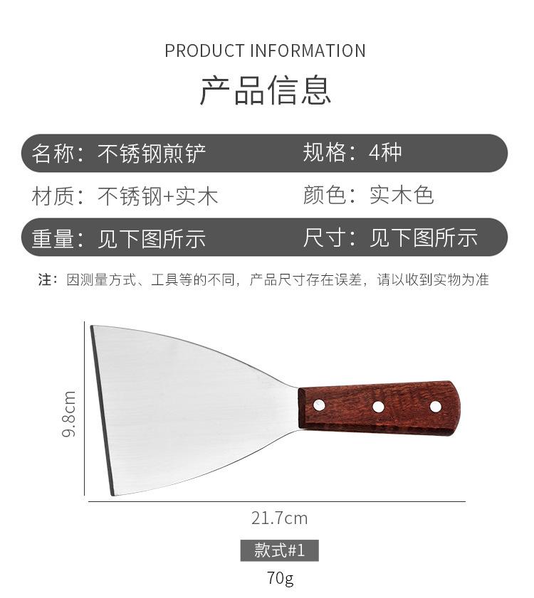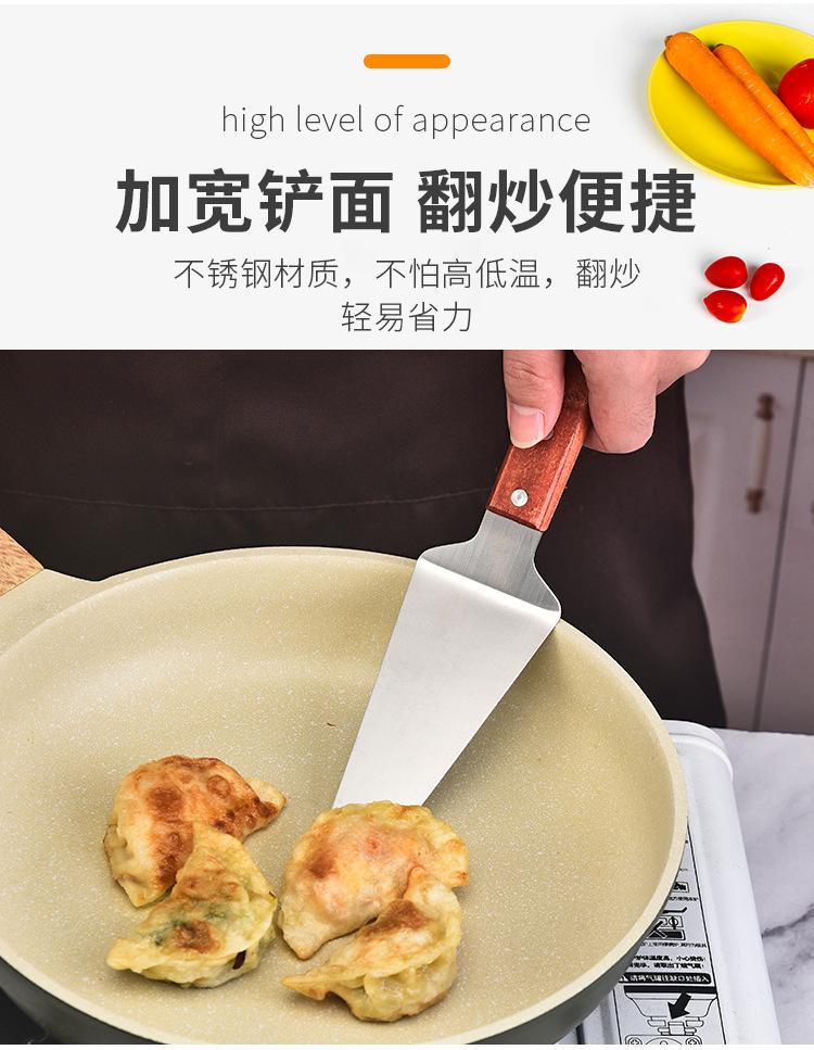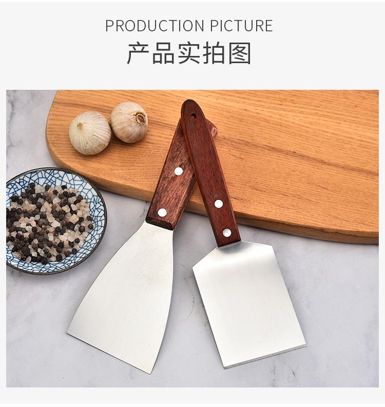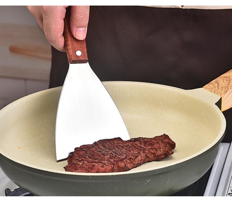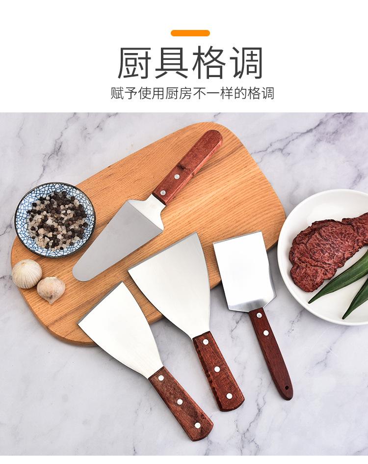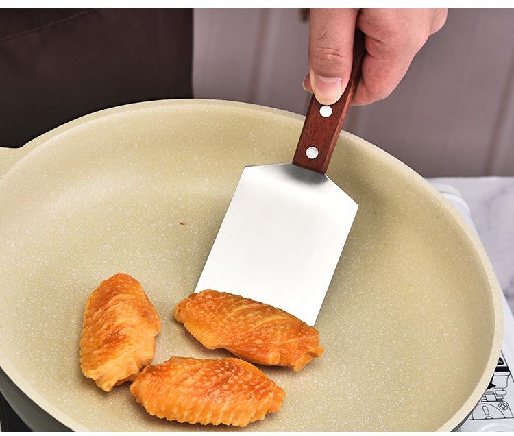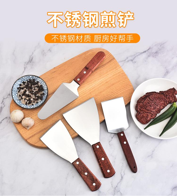 Espátula de Aço Inoxidável do Fabricante, Espátula Teppanyaki, Espátula de Pizza Doméstica, Espátula de Cozinha Doméstica, Espátula para Bife, Espátula para Fritura com Cabo de Madeira