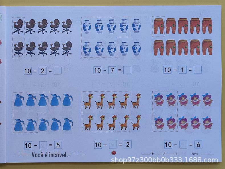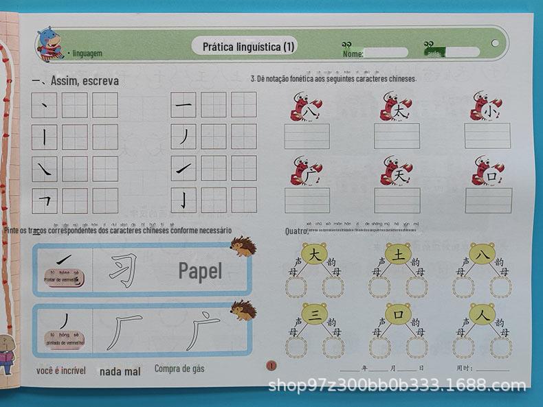 Papel de teste de coesão jovem papel de teste pré-escolar um dia para praticar pinyin chinês preparação de entrada de matemática grande exercício