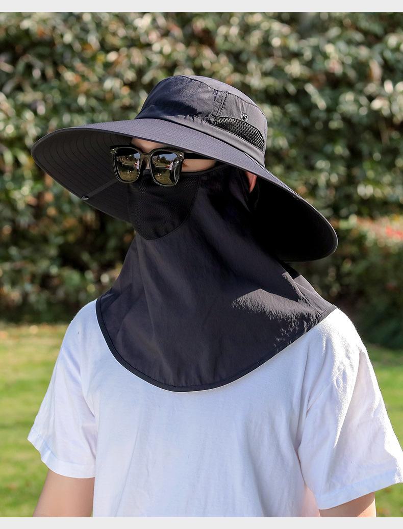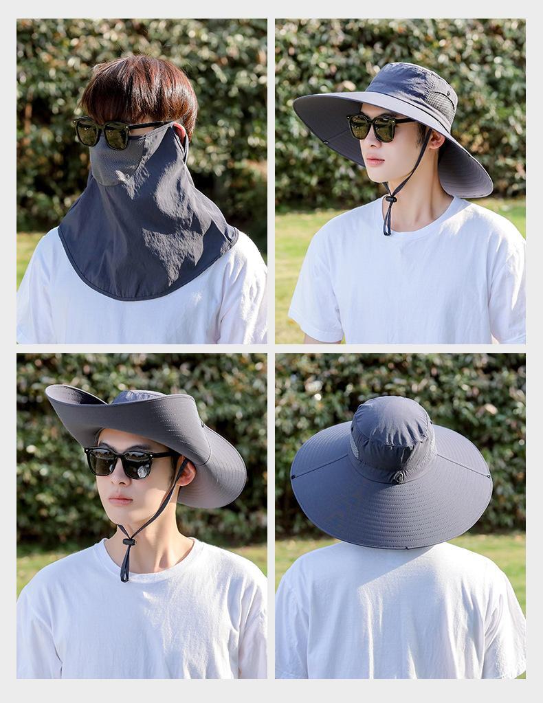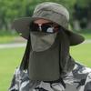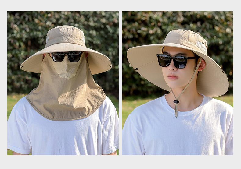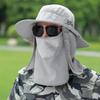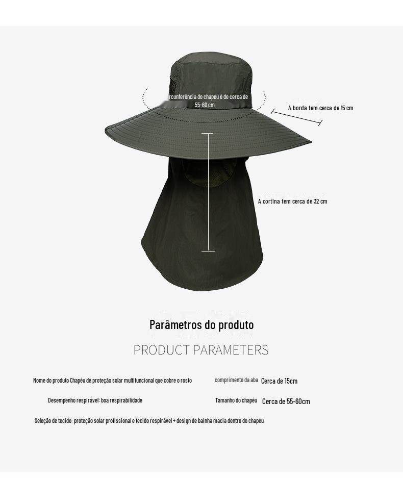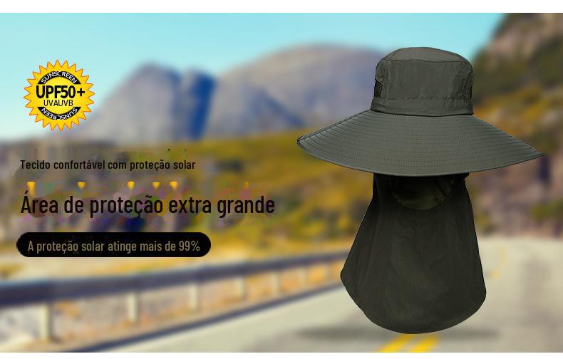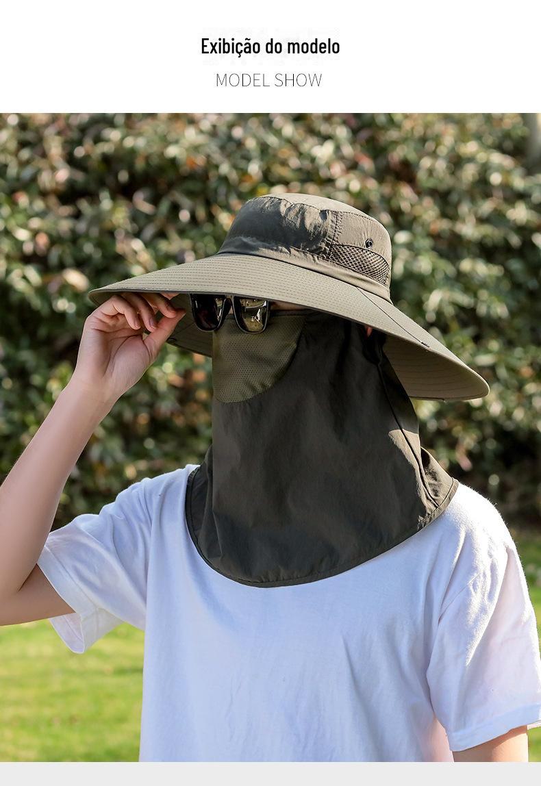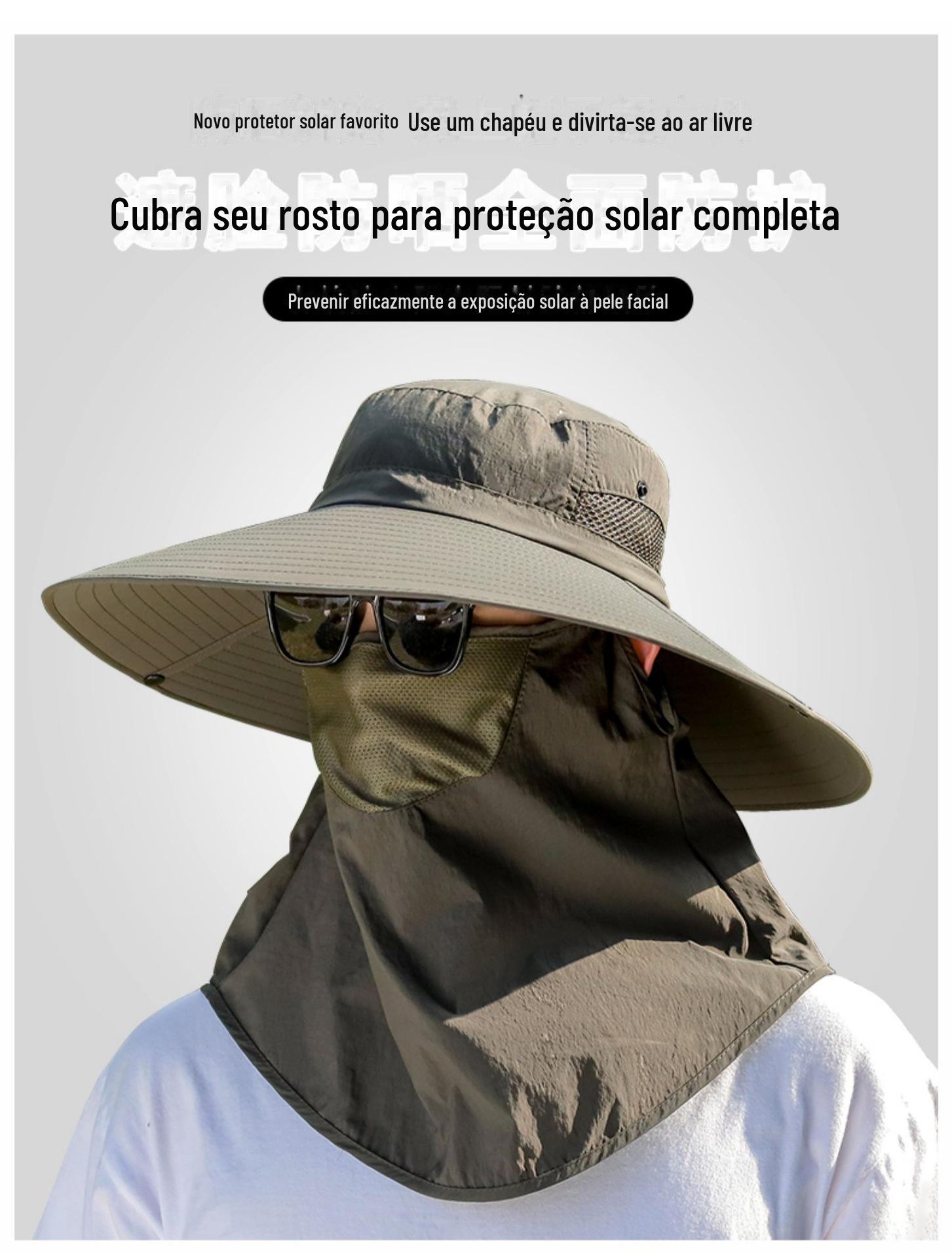 Chapéu de Pescador Chapéu de Sol de Verão Masculino Cortina Chapéu de Pesca ao Ar Livre Máscara Facial Respirável Aba Larga Respirável Proteção Solar