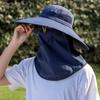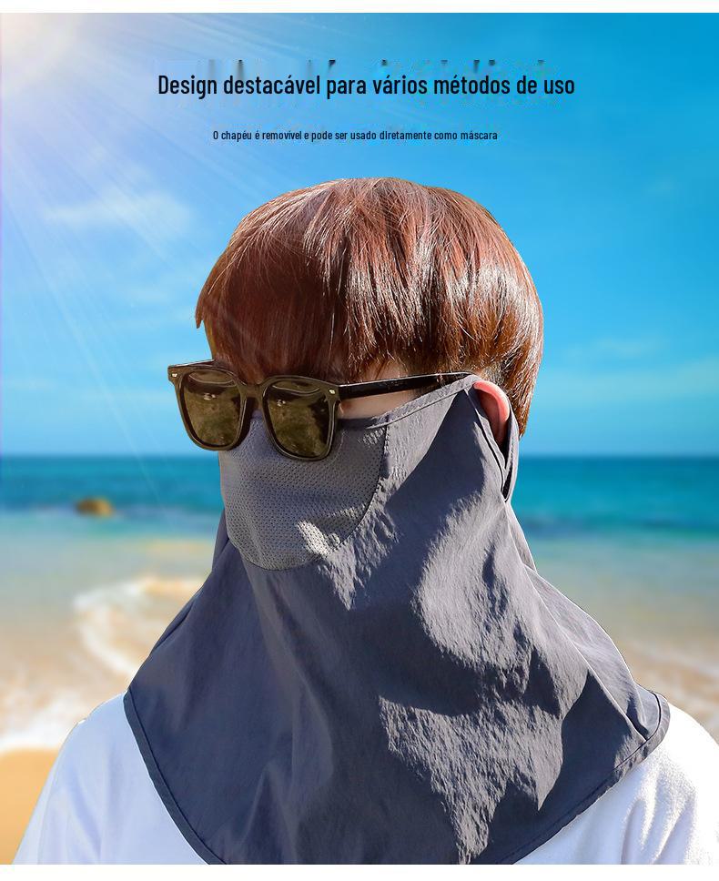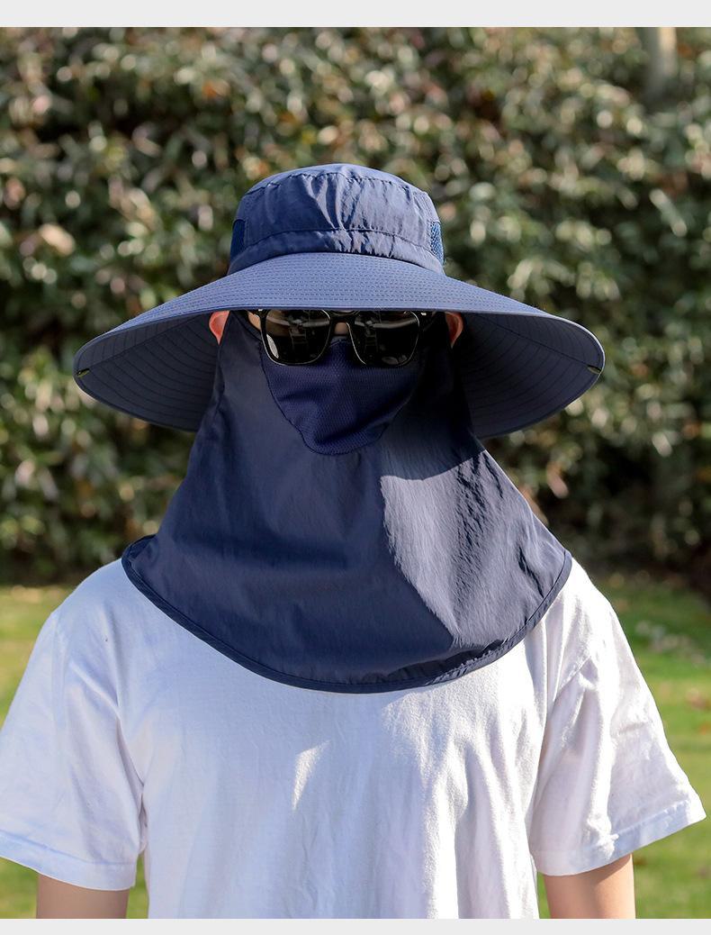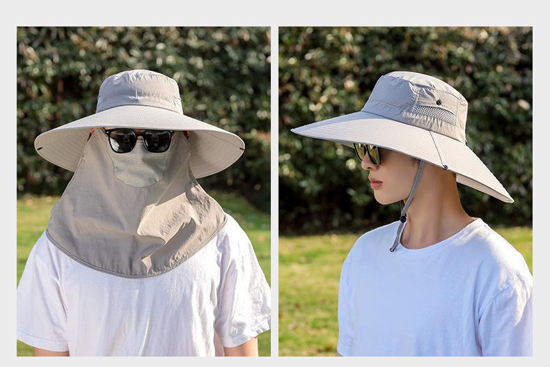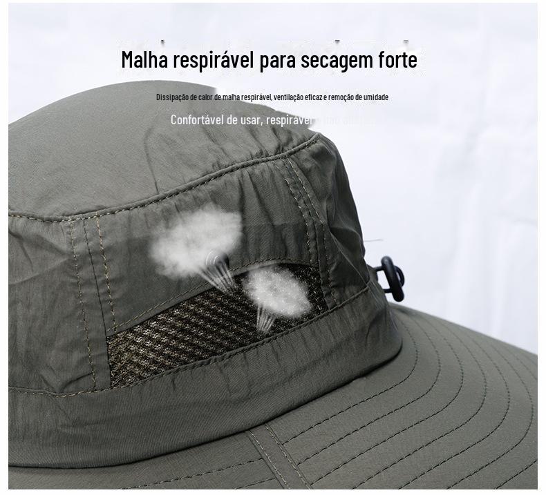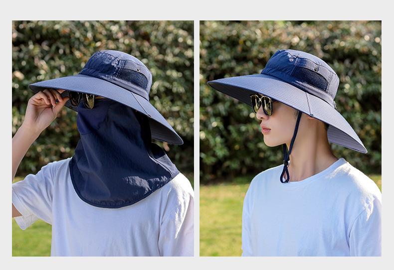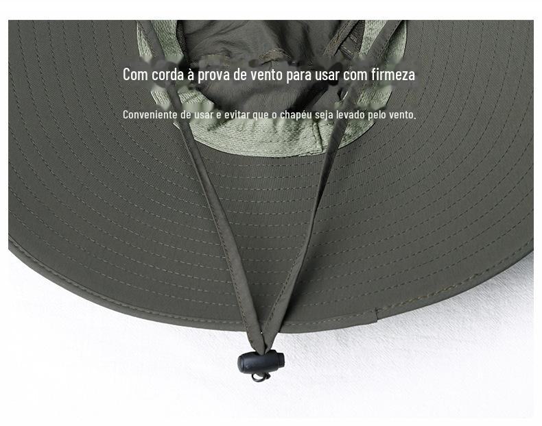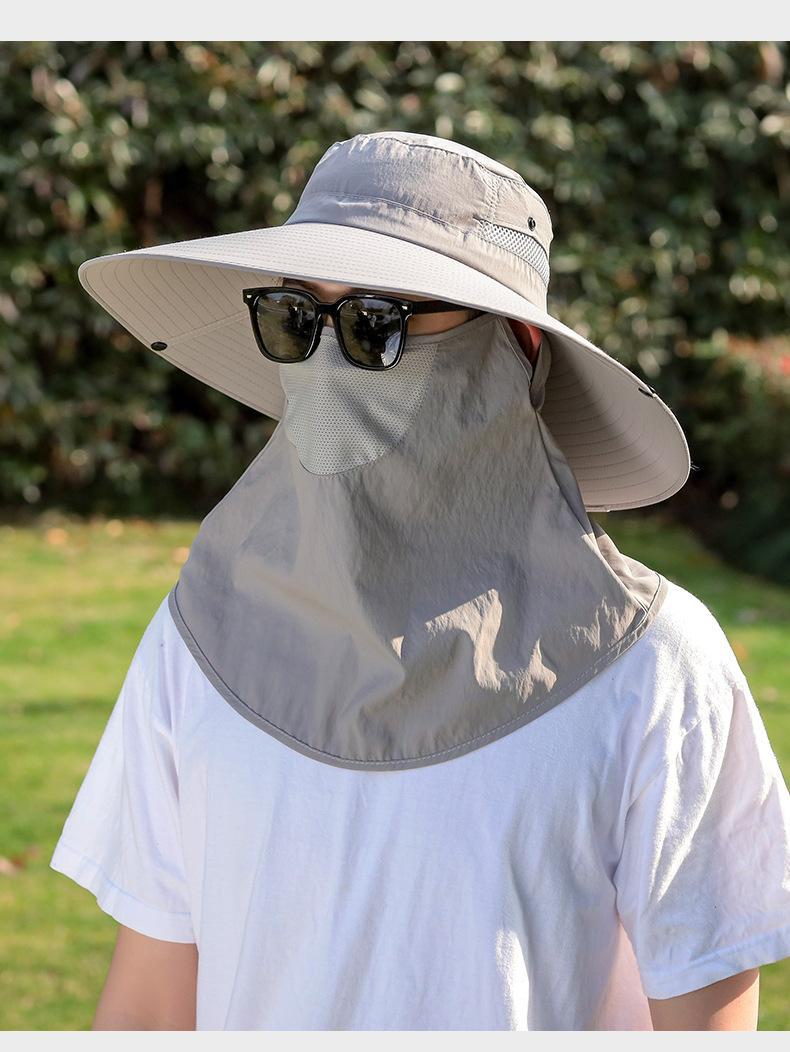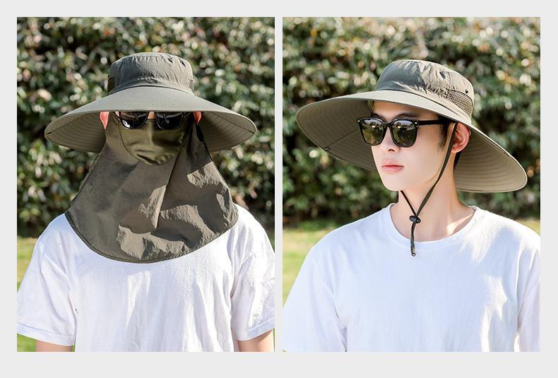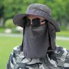 Chapéu de Pescador Chapéu de Sol de Verão Masculino Cortina Chapéu de Pesca ao Ar Livre Máscara Facial Respirável Aba Larga Respirável Proteção Solar