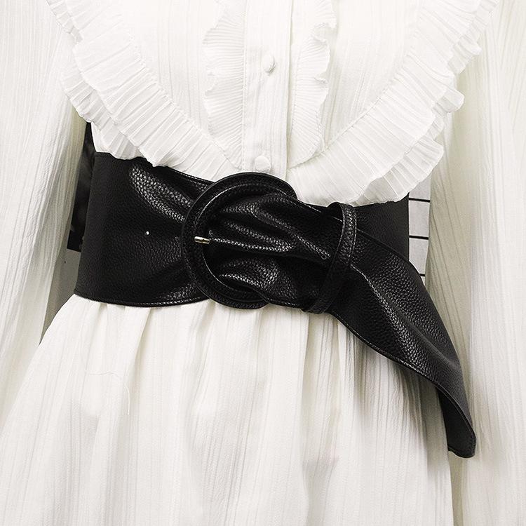 Cinto largo feminino, atacado, retrô, moda internacional, simples, para todos os tipos de casaco, acessórios para cinto, fivela de pino, capa decorativa para cintura, preto