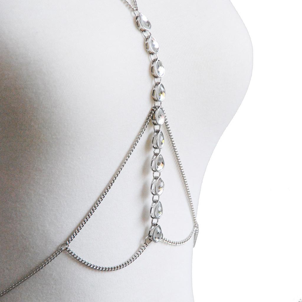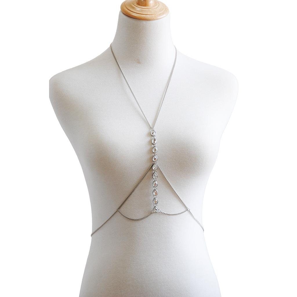 Europa e Estados Unidos joias transfronteiriças novo colar moda simples diamante sexy cadeia do corpo multi-camada peito cadeia fábrica vendas diretas