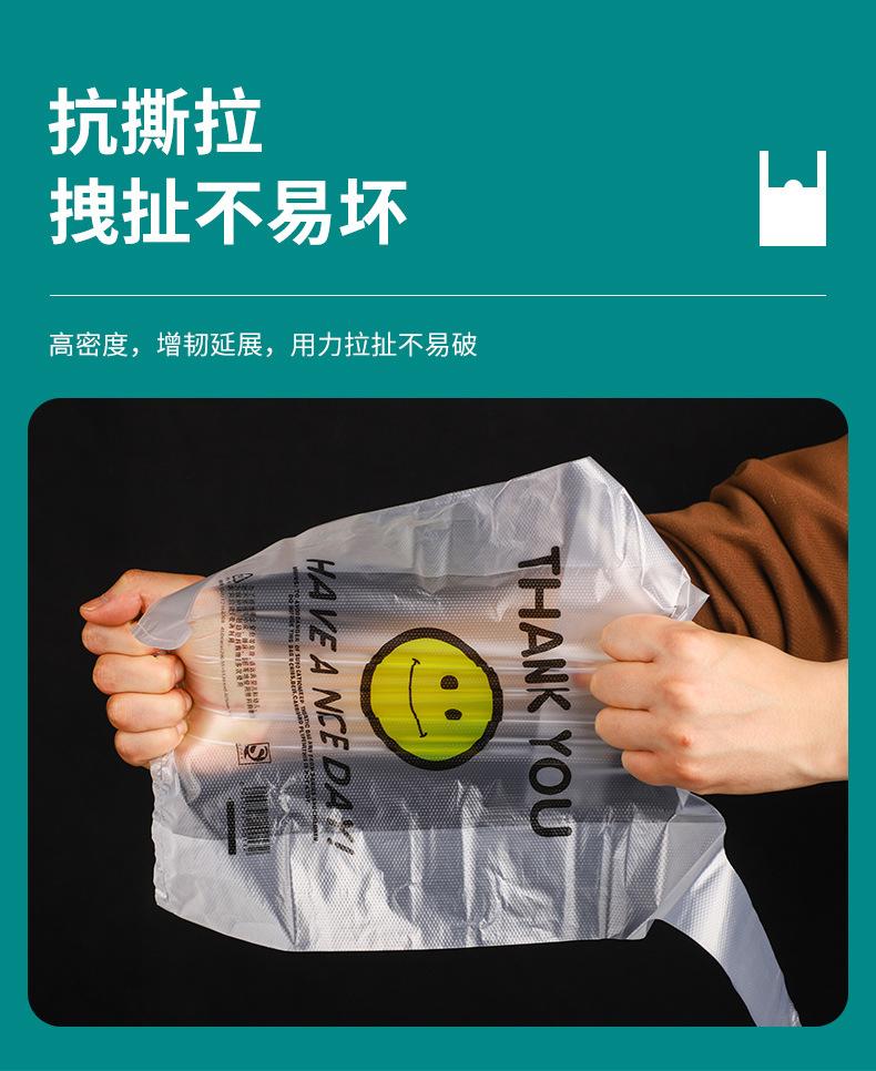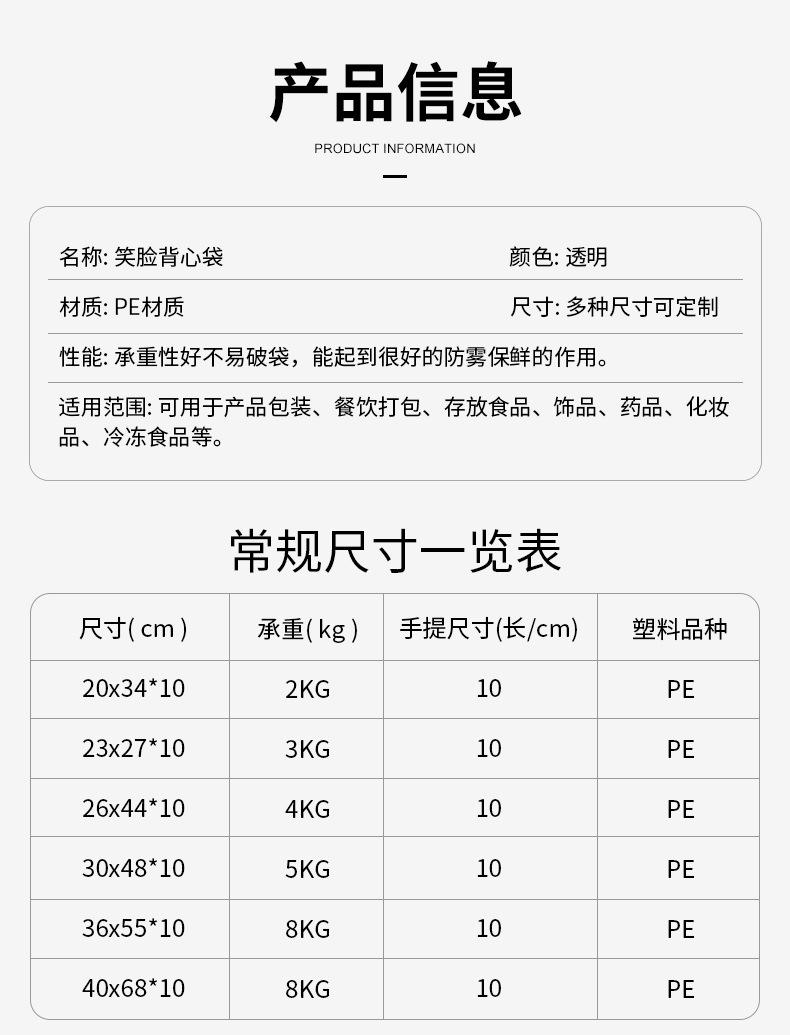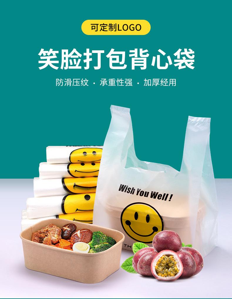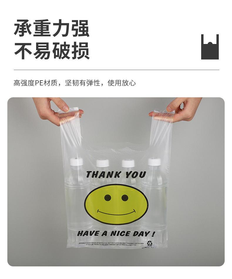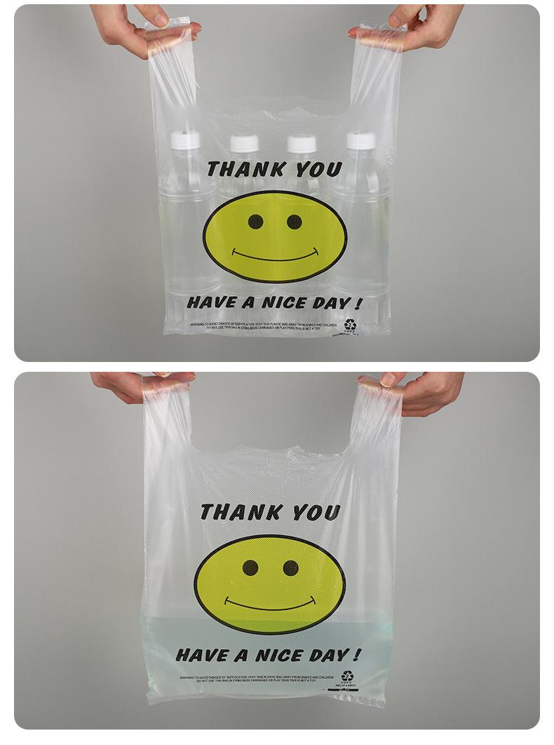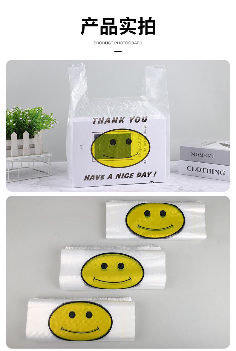 Transparente smiley rosto saco colete saco engrossado frutas frescas take-out supermercado saco de compras saco tote saco plástico