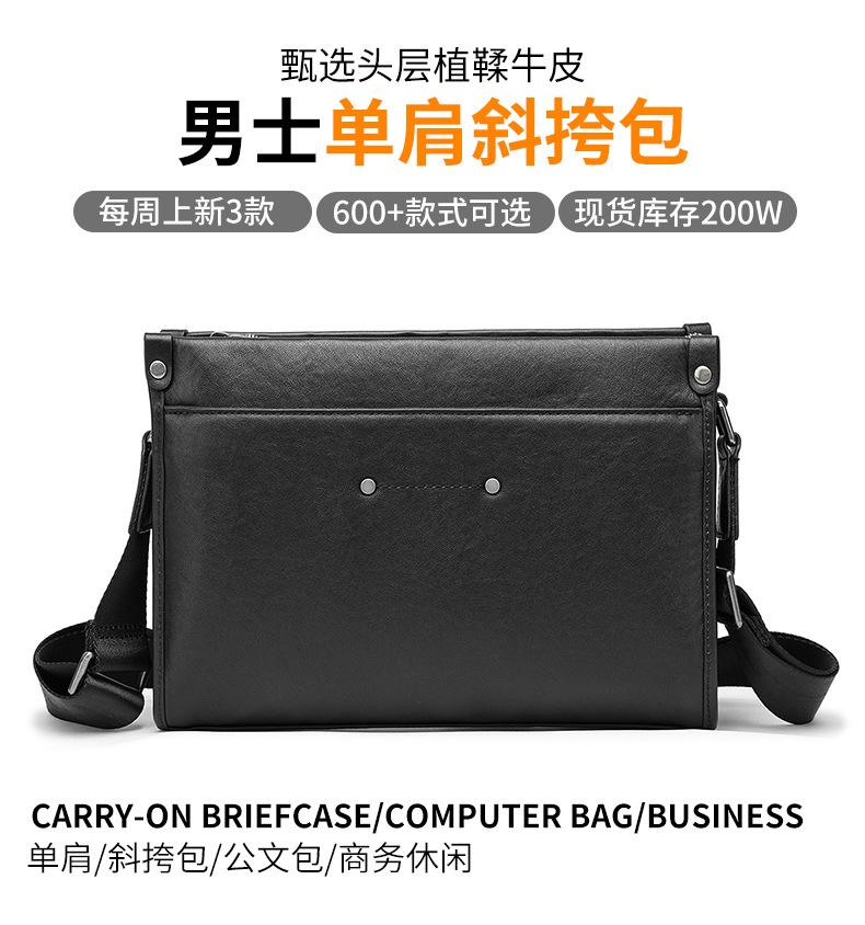 Bolsa transversal masculina de couro legítimo, bolsa de ombro para trabalho, à prova d'água, grande capacidade, casual, fashion, bolsa de ombro masculina, marca da moda