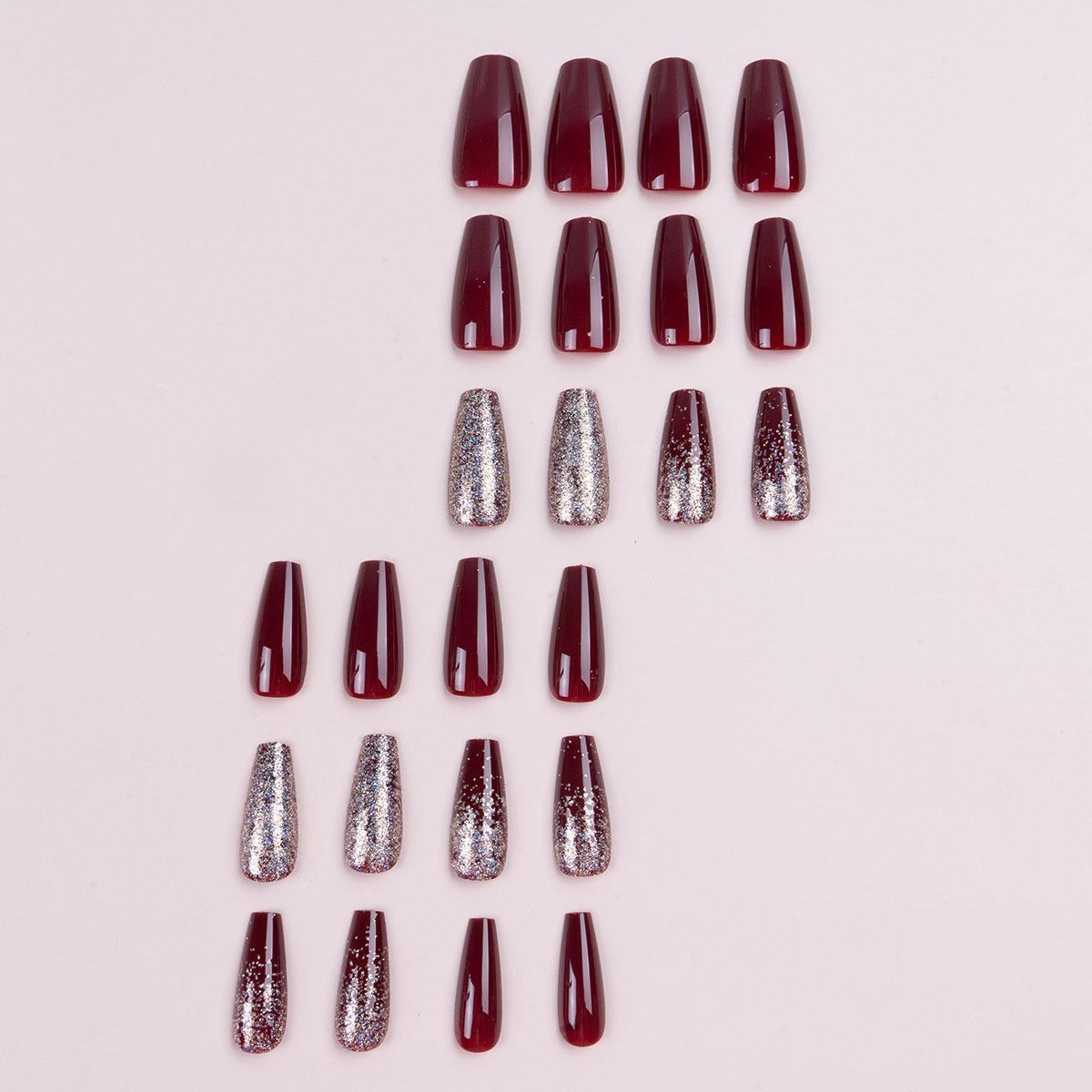 Moda desgaste unha glitter comércio exterior vinho vermelho unha patch unhas removíveis produto branco acabado atacado