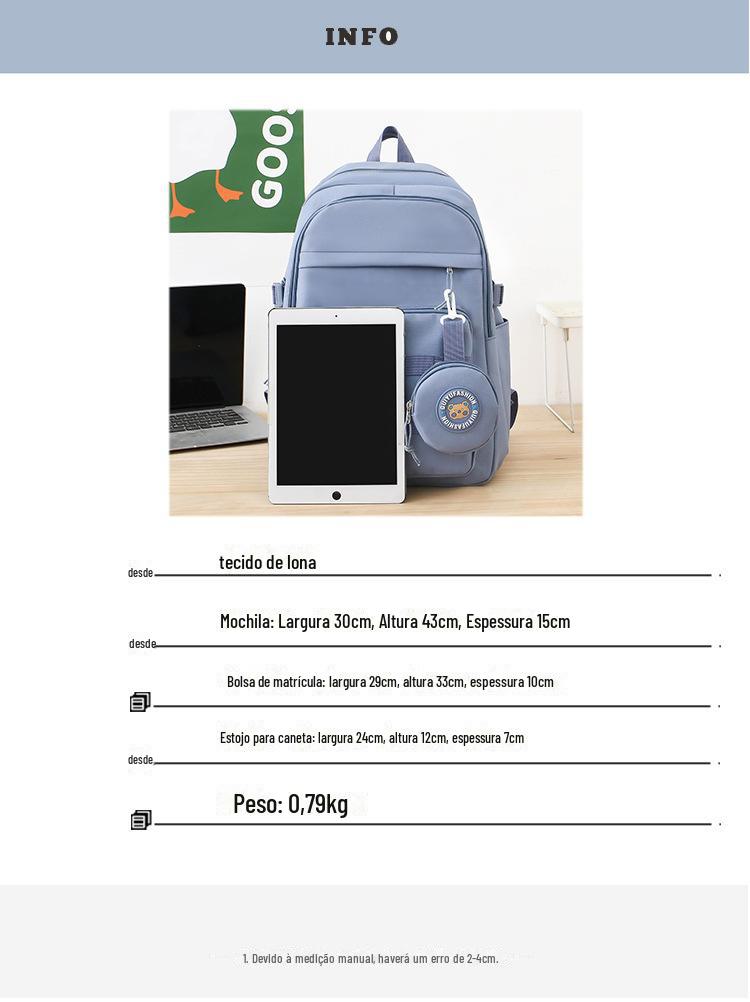 Verão Nova Escola Temporada 3-4 Grade Primary School Bag Estilo Coreano Simples Grande Capacidade Mochila Canvas Casual Bag