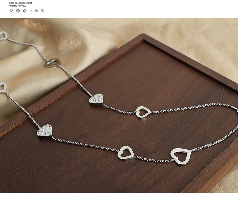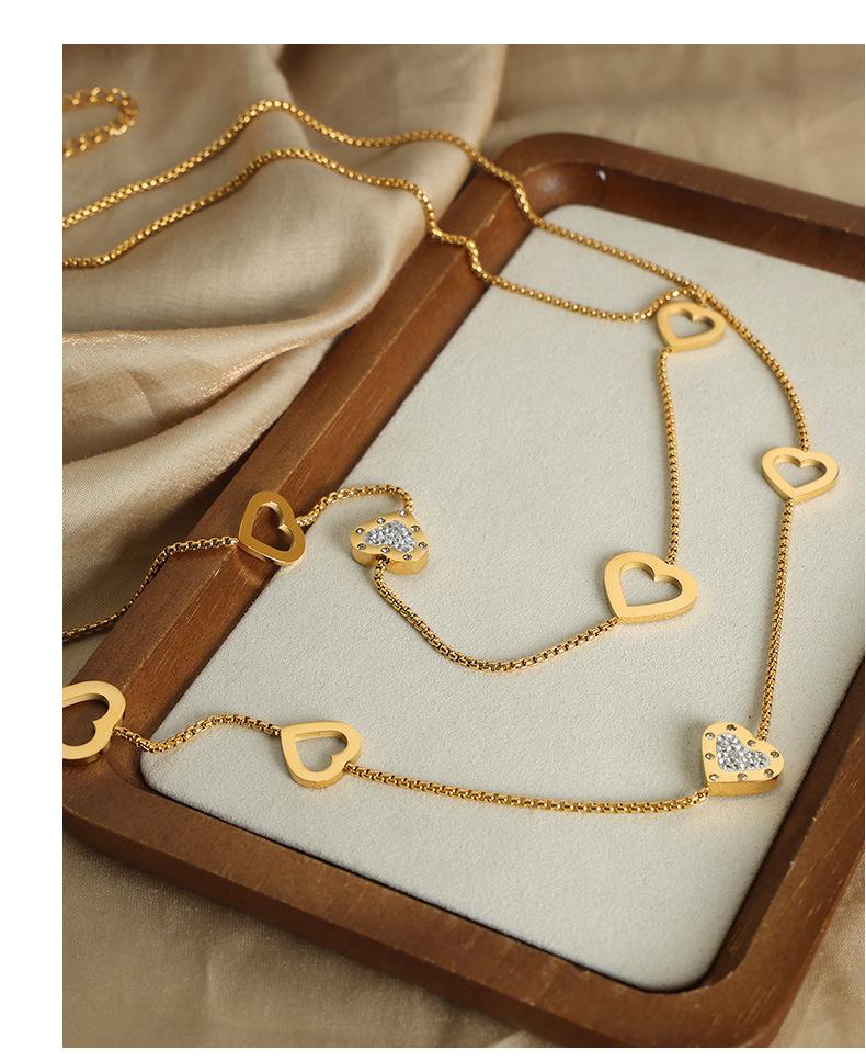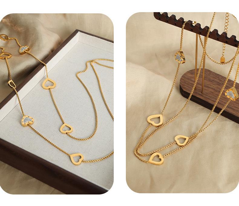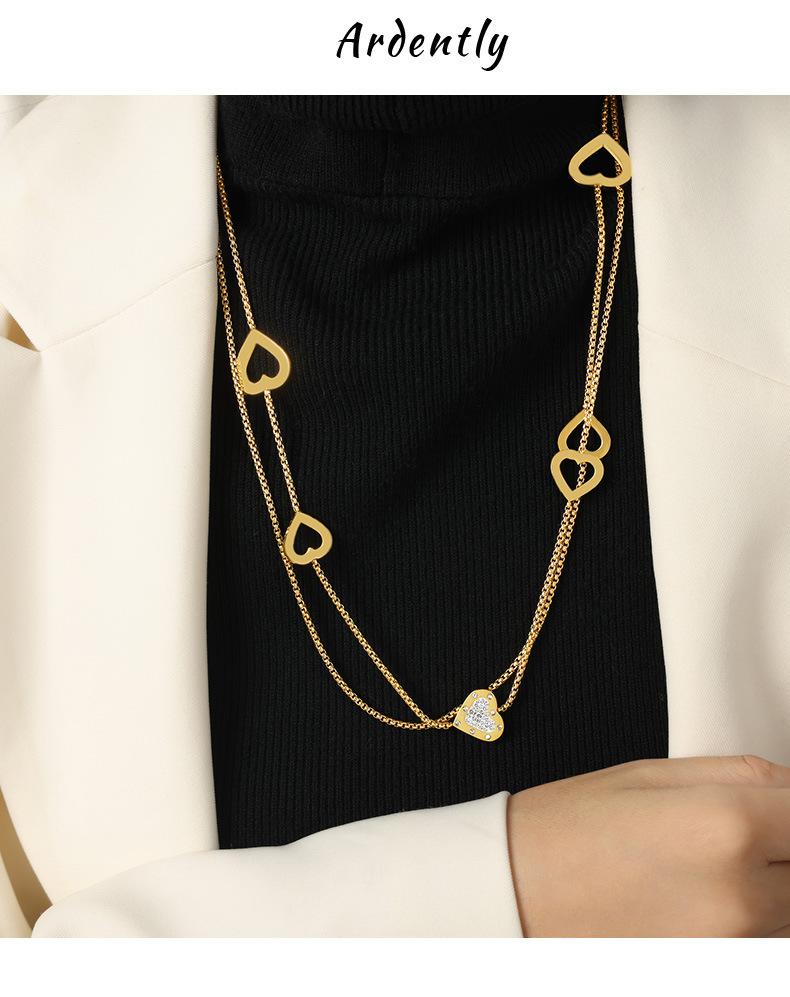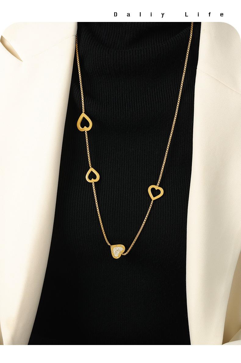 Corrente de suéter com zircônia em formato de coração incrustada transfronteiriça em temperamento oco amor colar titânio aço ouro 18k joias femininas