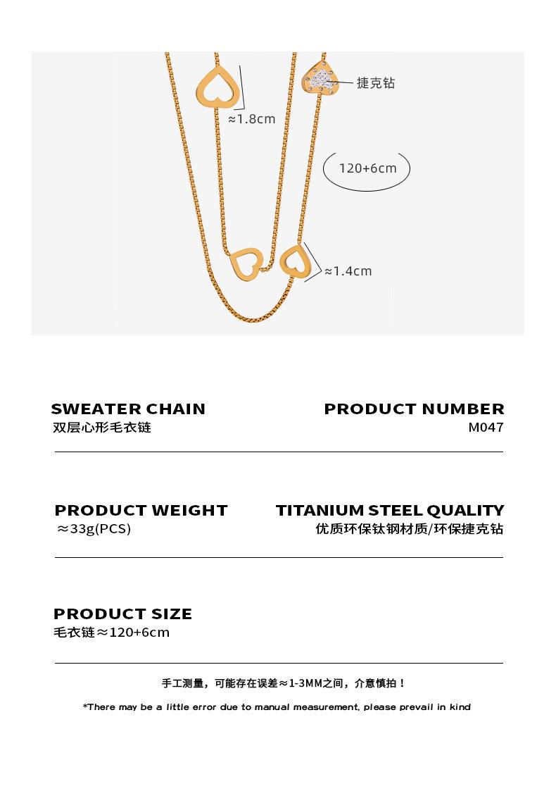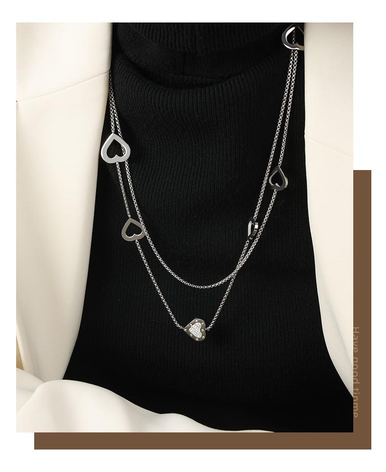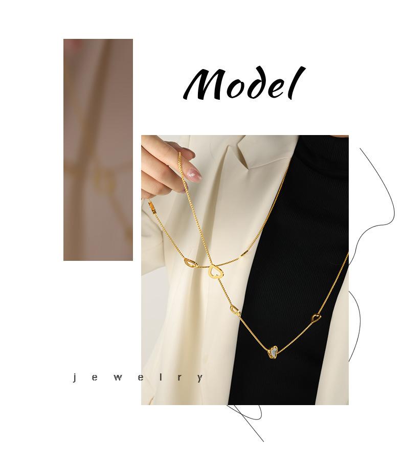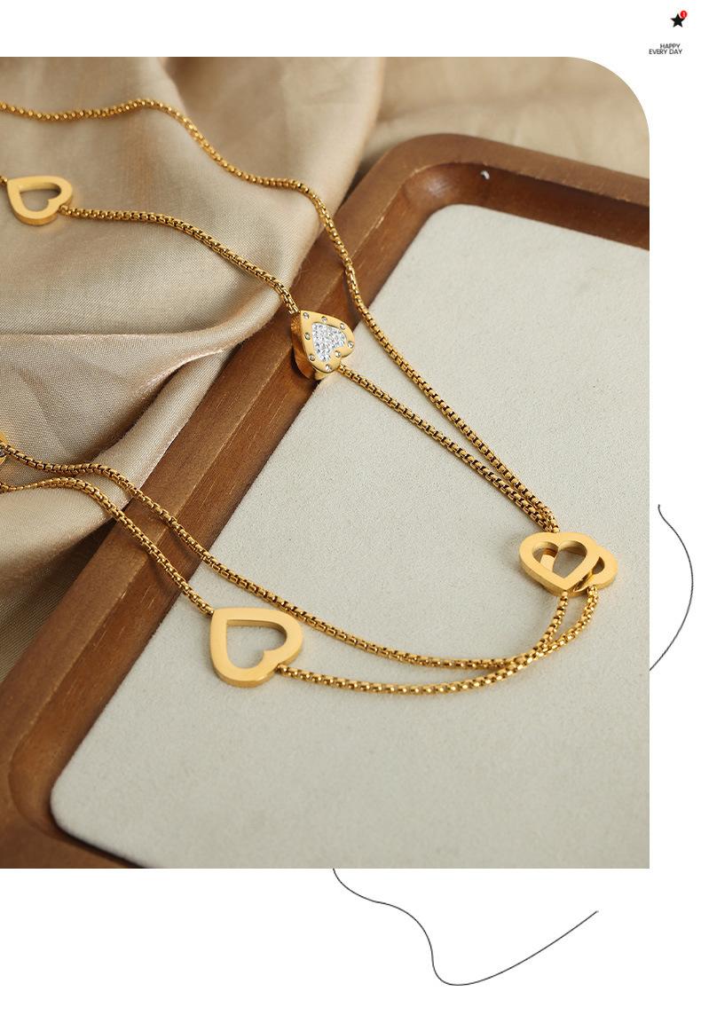 Corrente de suéter com zircônia em formato de coração incrustada transfronteiriça em temperamento oco amor colar titânio aço ouro 18k joias femininas