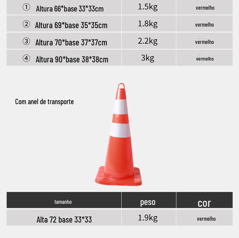 Cone de estrada de PVC cone de aviso de segurança de estrada cone de sorvete refletivo de alta qualidade cone de isolamento de borracha barril cone de plástico cone quadrado