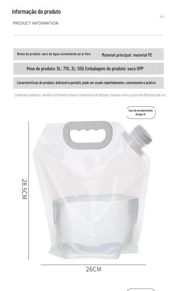| Peso líquido do produto: | 5L:77g、3L:55g | Embalagem do produto: | Saco de OPP |