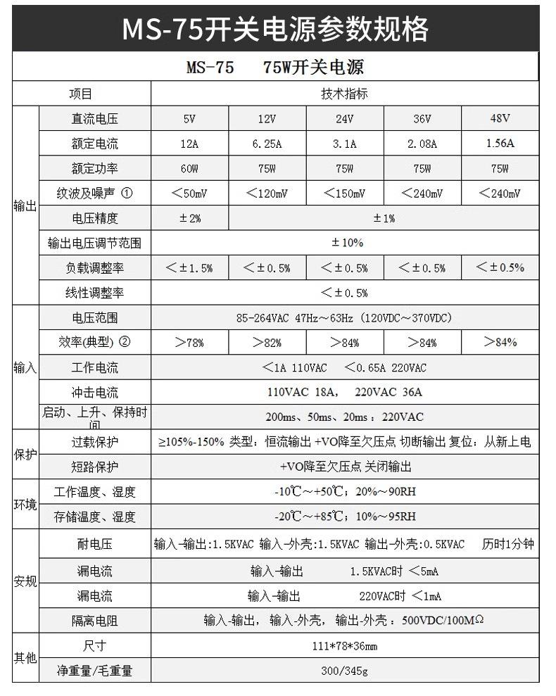 S-75-5, S-75-12, S-75-24, S-75-36, S-75-48, MS-75-5, MS-75-12, MS-75-24