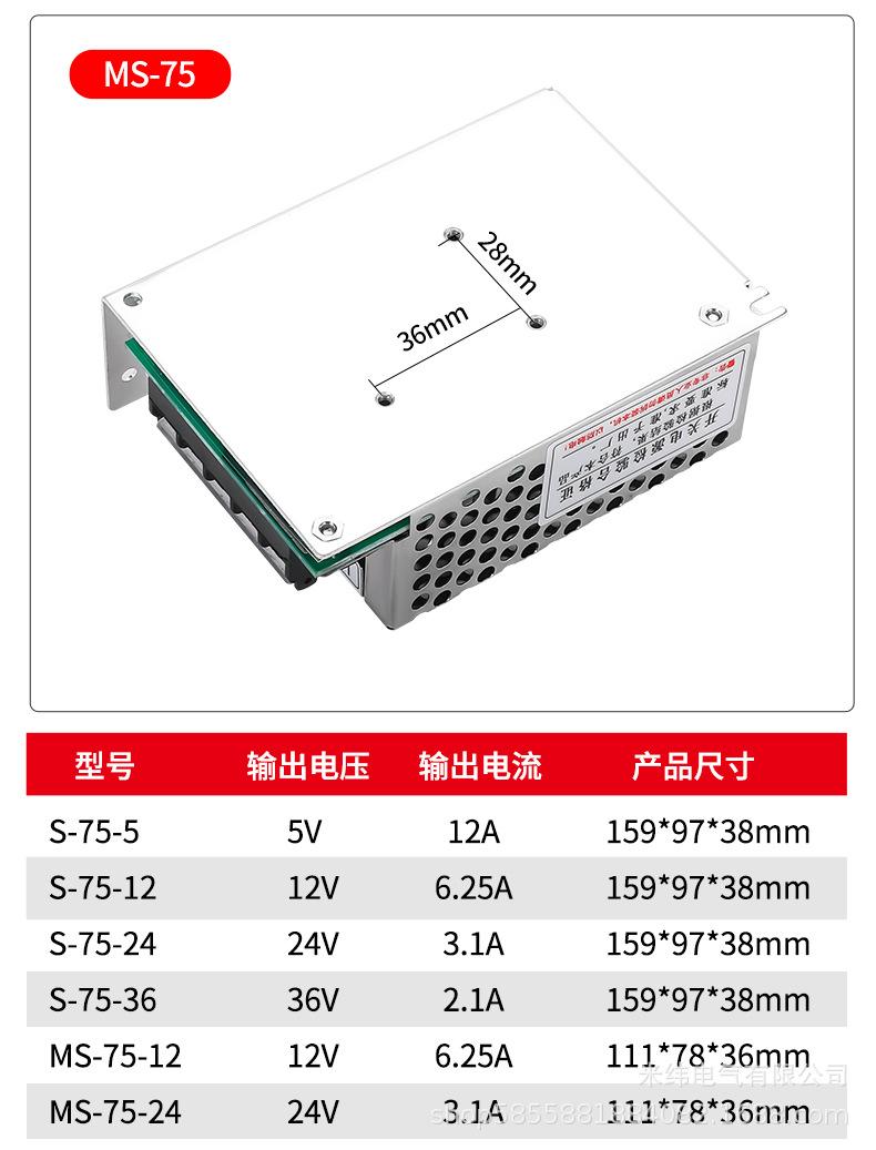Miwei S-75-24/MS-75-12 Transformador 220 para 24V12V36V5V DC Switching Power Supply 75W