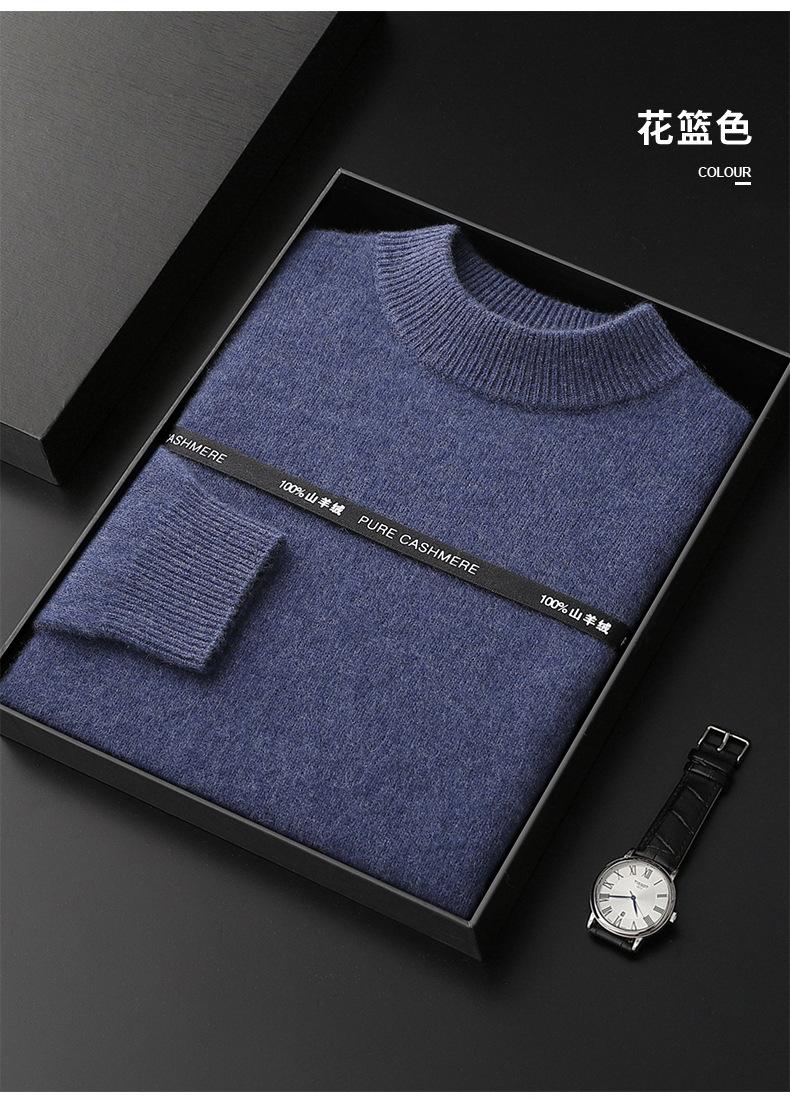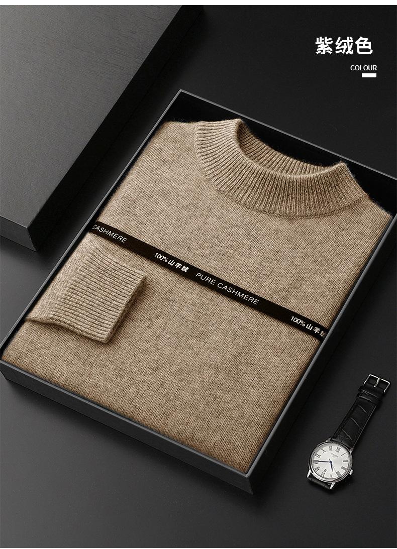 Suéter de caxemira de inverno homens liso engrossado meia gola tartaruga suéter básico cor sólida camisa de fundo roupas masculinas