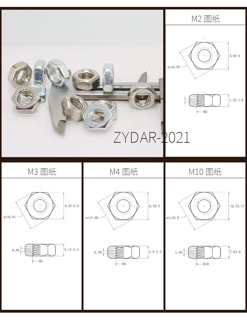 Hexagonal nut m2 nickel plated, Hexagonal nut m2.5 nickel plated, Hexagonal nut m3 nickel plated, Hexagonal nu...