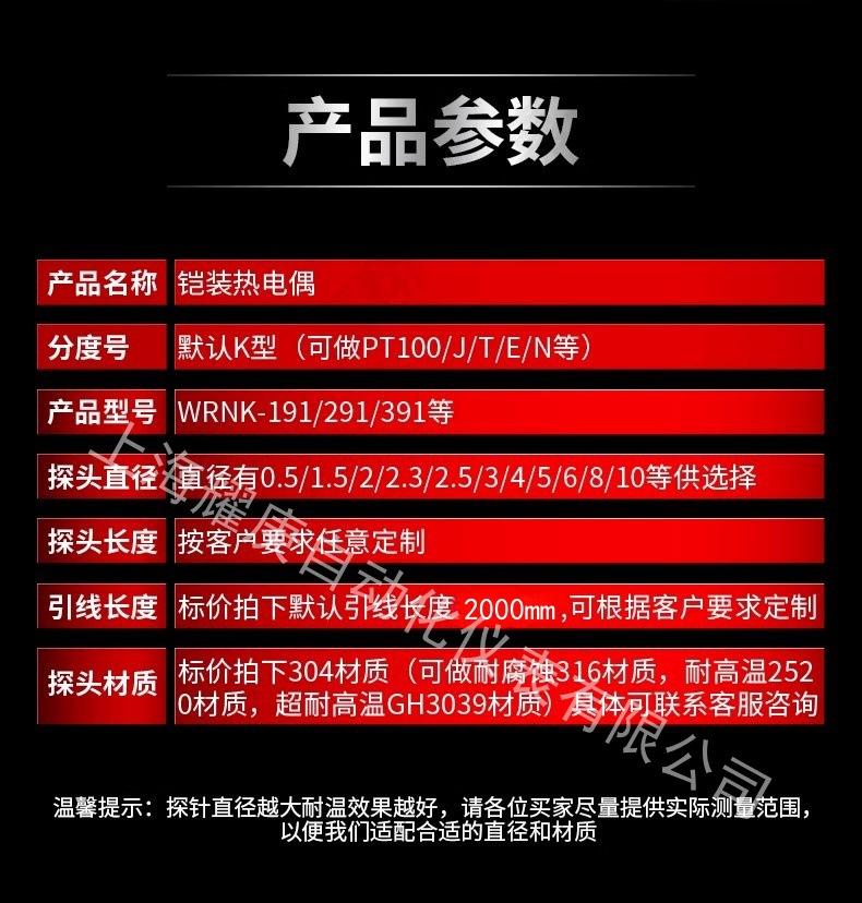 Termopar Blindado Tipo K Wrnk-191 Haste de Medição de Temperatura Microfina Sensor de Temperatura Tipo Sonda Sonda de Controle de Temperatura Vendas Diretas
