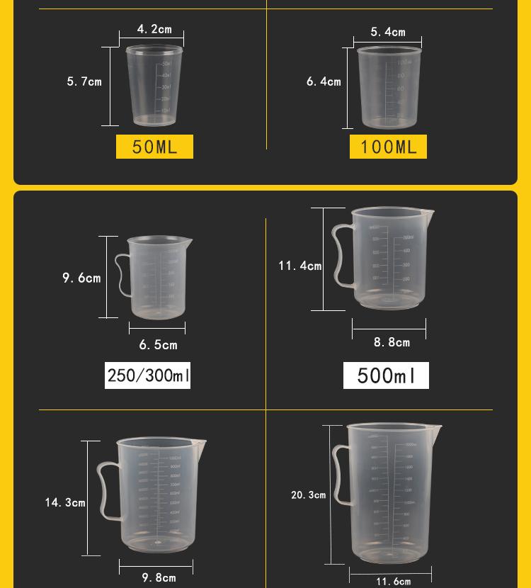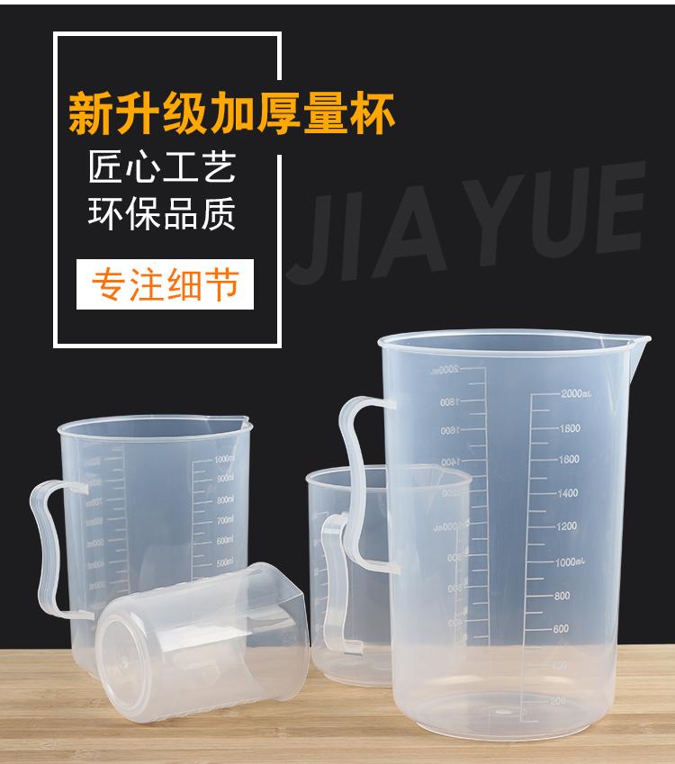 Copo medidor de plástico espesso para assar, transparente, para uso doméstico, de qualidade alimentar, com escala, copo medidor, cilindro pequeno, cozinha, leite, chá, xícara
