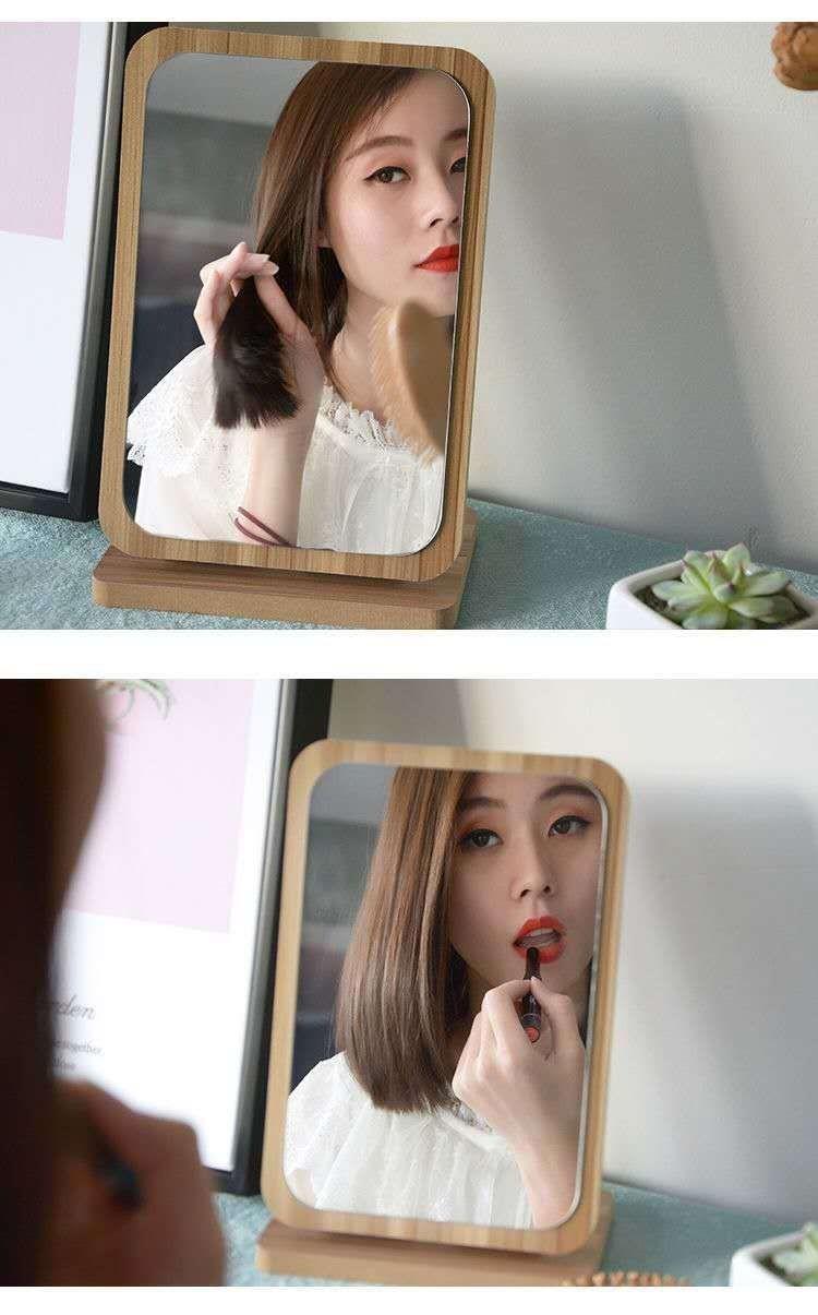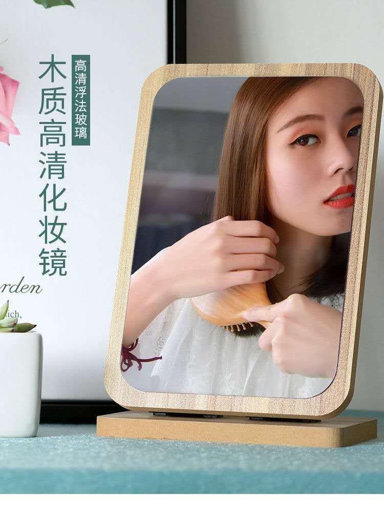 Espelho de Maquiagem de Mesa de Madeira Novo Estilo de Alta Definição de Face Única para Dormitório de Estudantes do Sexo Feminino Espelho de Beleza Grande de Madeira para Maquiagem