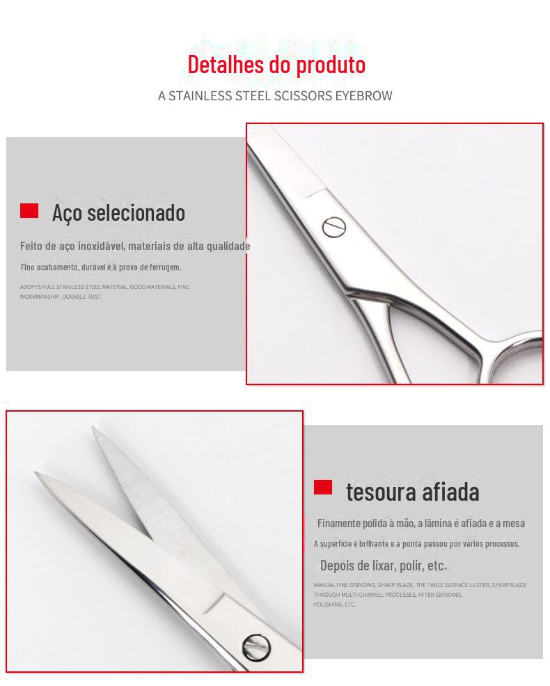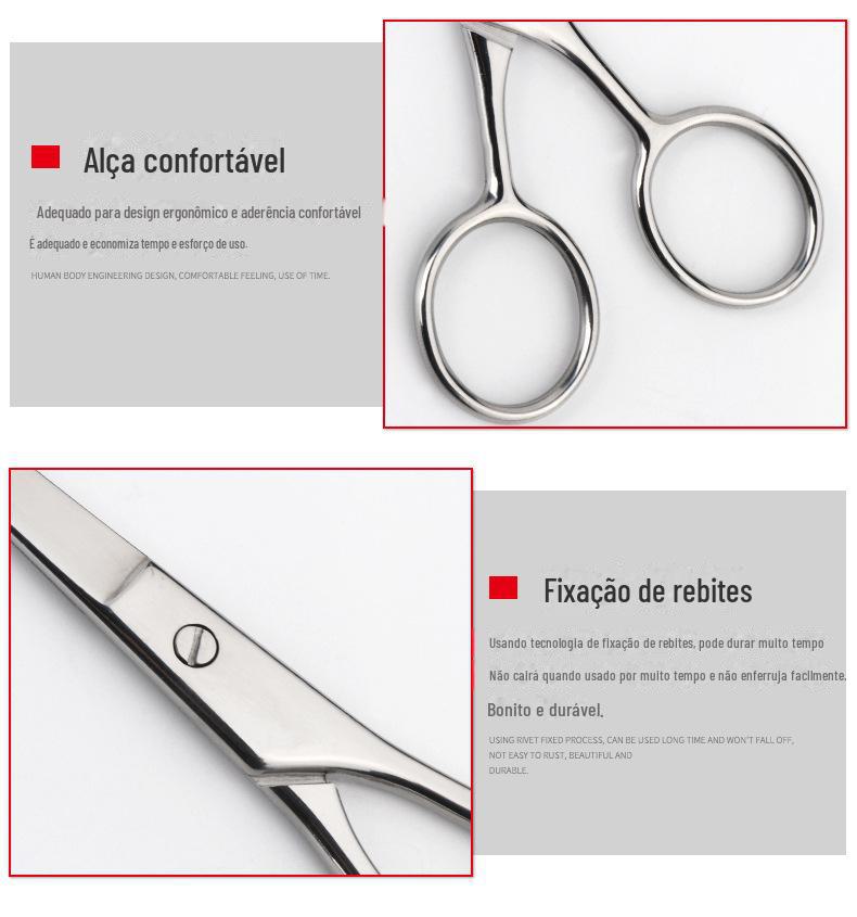 Atacado do Fabricante Tesoura de Barba de Aço Inoxidável, Tesoura de Pelos do Nariz, Tesoura de Maquiagem para Sobrancelhas, Tesoura de Beleza, Tesoura de Ponta Arredondada para Aparar Sobrancelhas