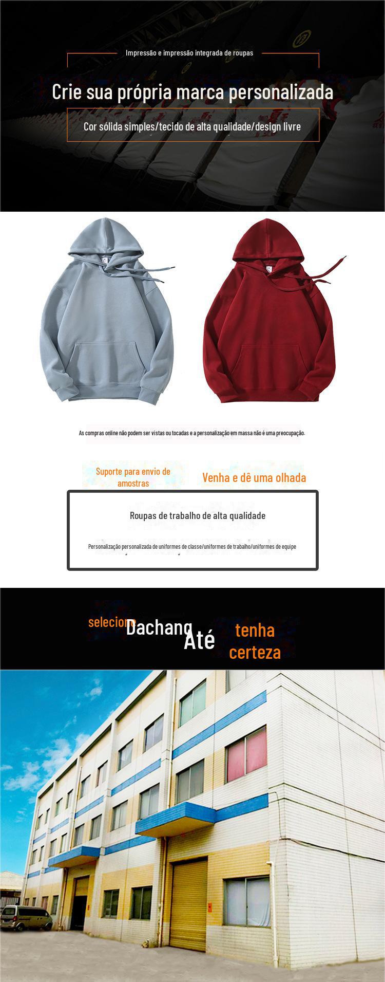 Outono e Inverno cor sólida solta drop-shoulder com capuz pullover suéter classe uniforme equipe de trabalho uniforme imagem impressa logotipo entrega