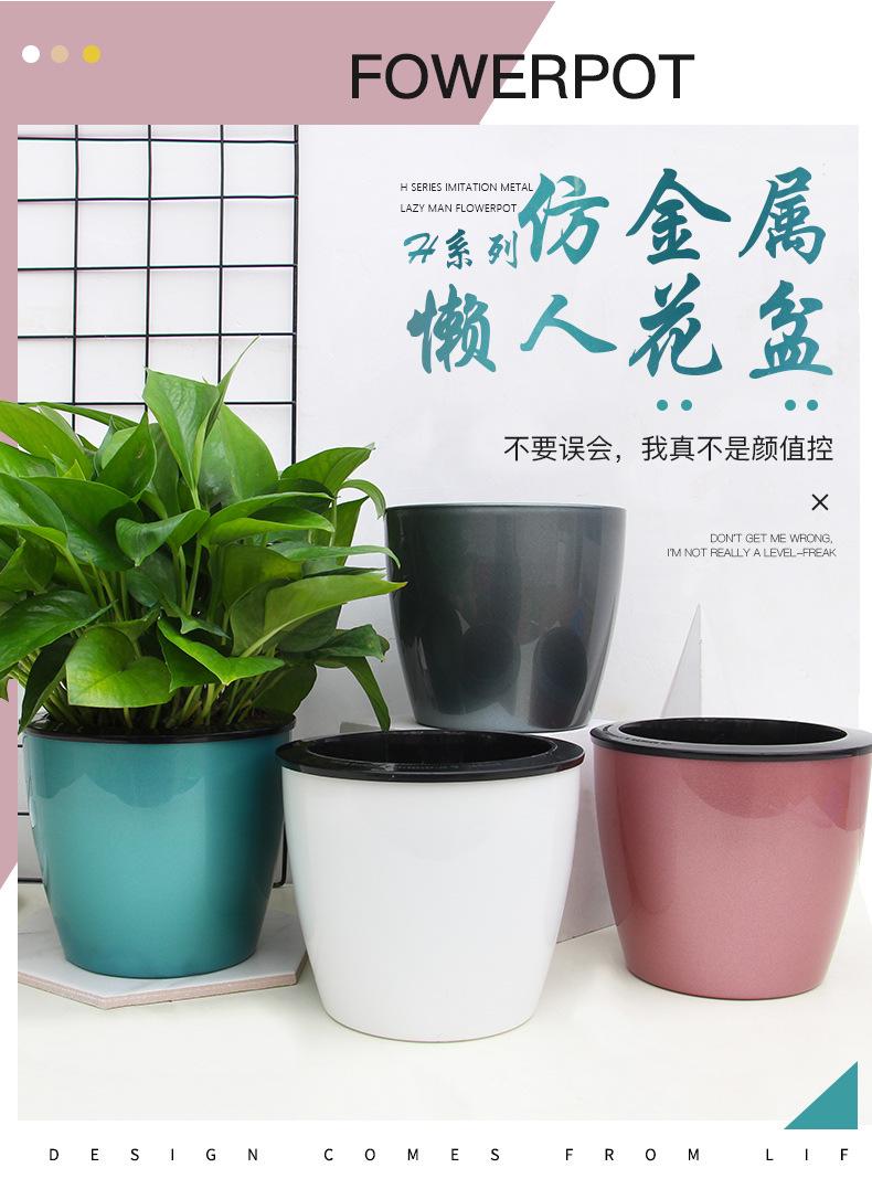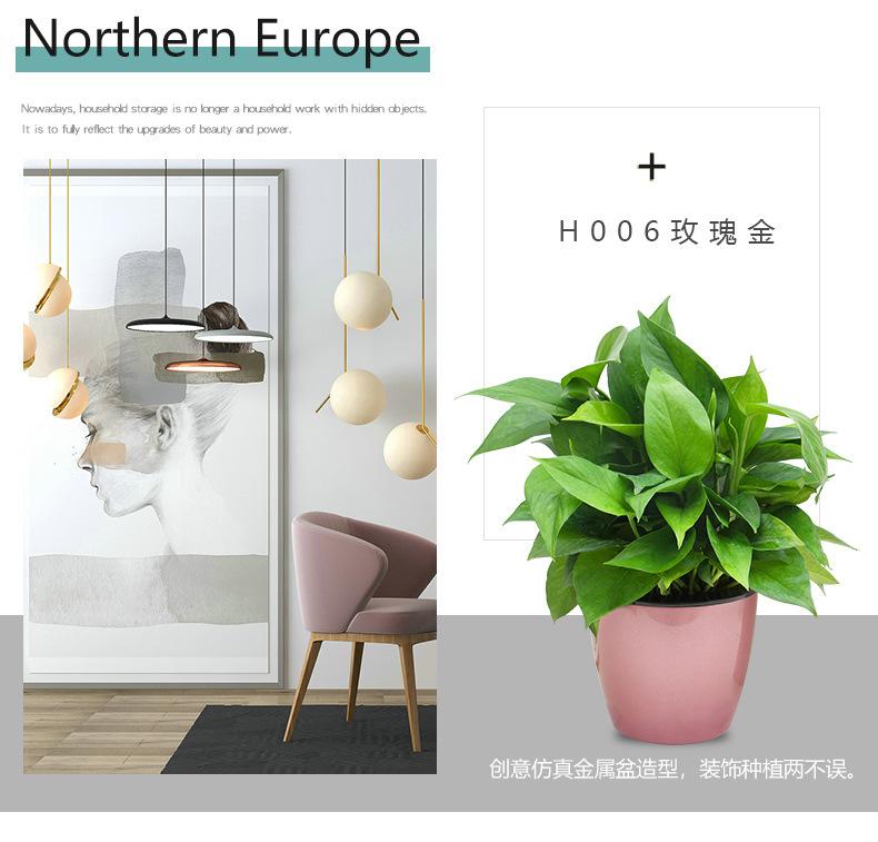 Vaso de flores de plástico com revestimento de rosas verdes e preguiçosas, direto da fábrica, imitação de metal, 180 cores