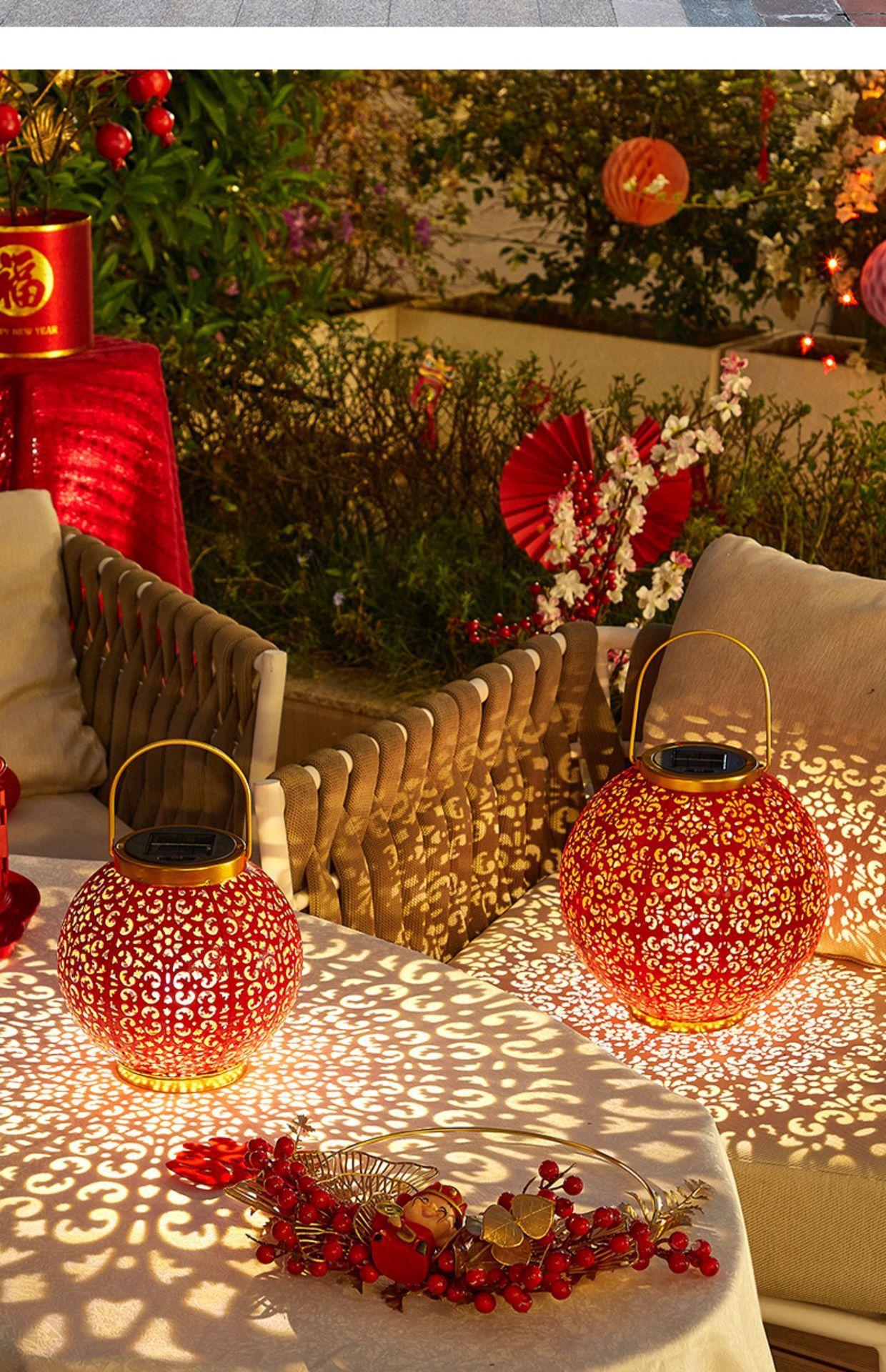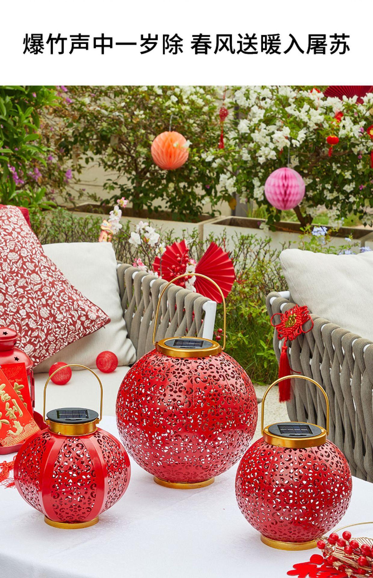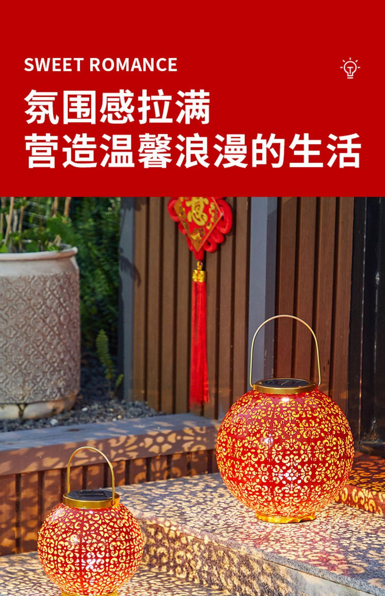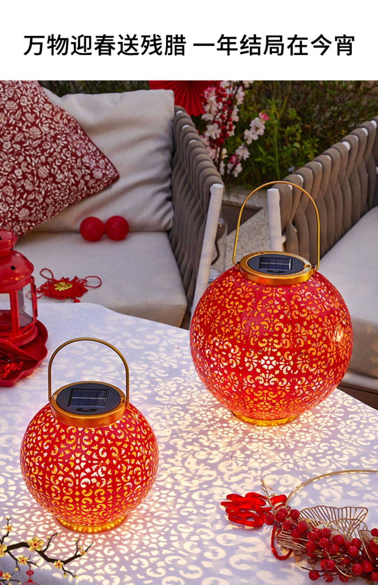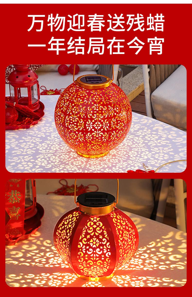 Solar Red Lantern festiva festival de ferro oco lâmpada de projeção pátio ao ar livre jardim impermeável paisagem lâmpada decorativa
