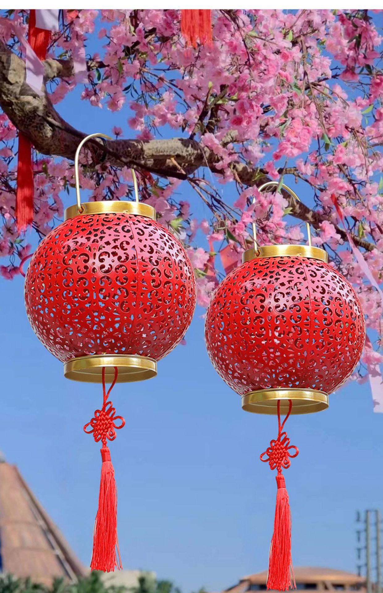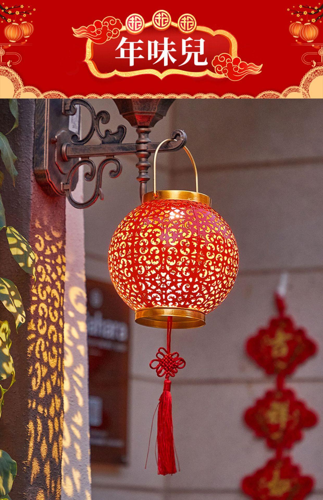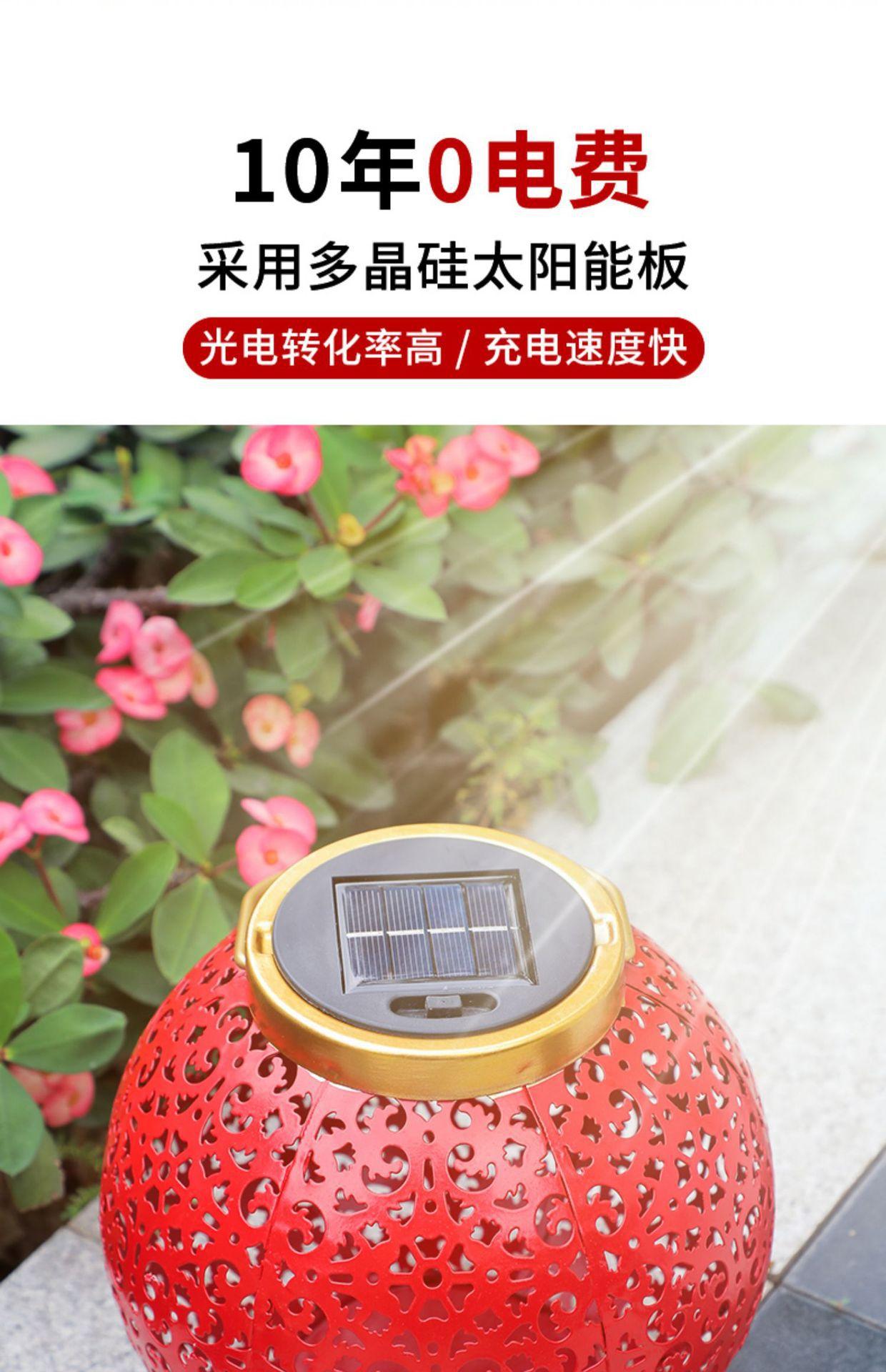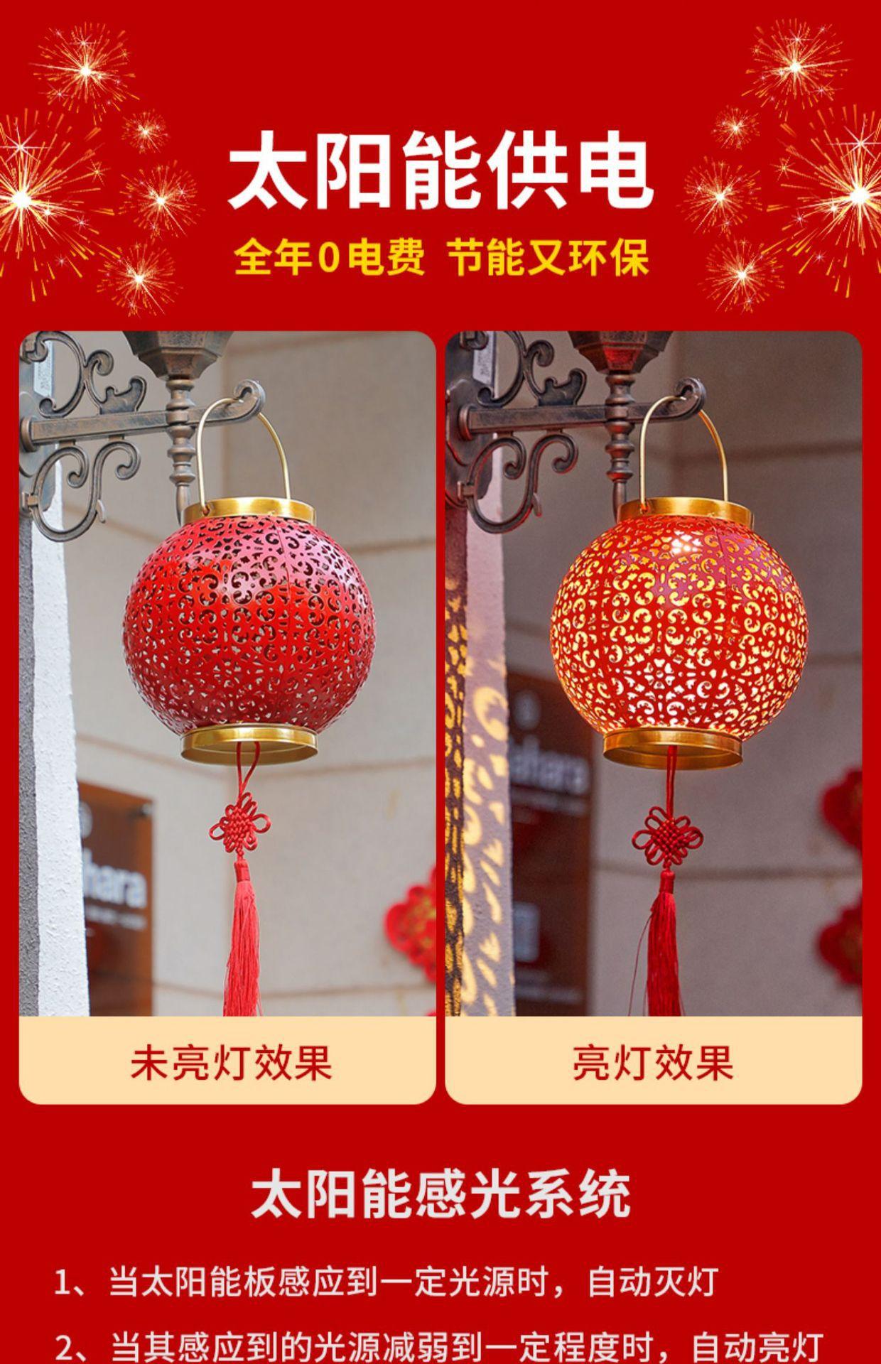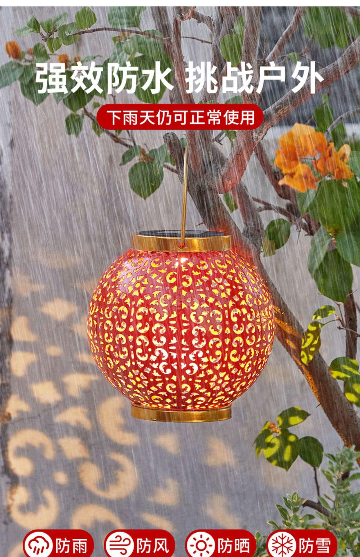 Solar Red Lantern festiva festival de ferro oco lâmpada de projeção pátio ao ar livre jardim impermeável paisagem lâmpada decorativa