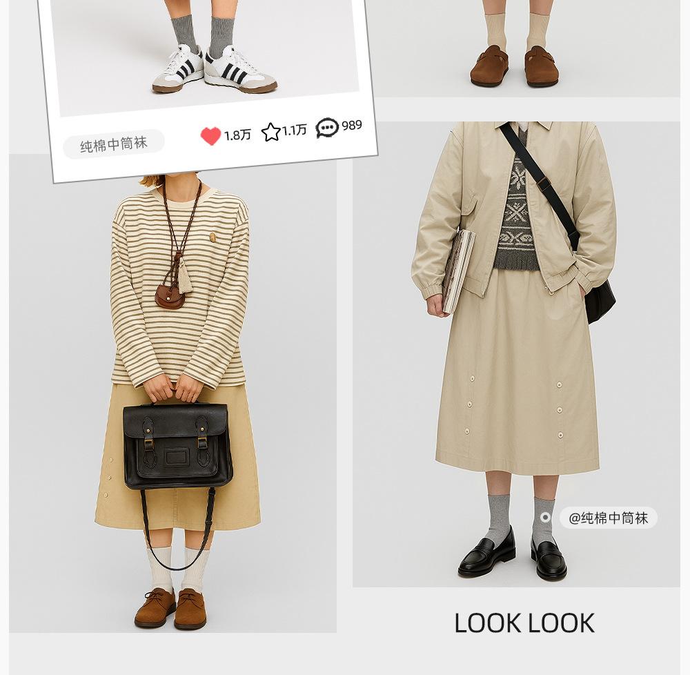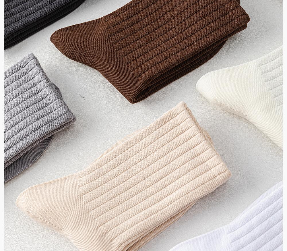 Meias de Algodão Puro para Mulheres, Meias de Cano Médio para Outono e Inverno, Meias Esportivas Absorventes de Suor de Algodão, Meias Longas Casuais Versáteis Estilo Japonês, Indústria de Meias de Zhuji