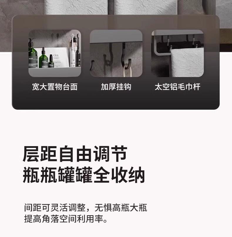 [Top of washstand/toilet] storage rack-30cm (with hook + towel bar)