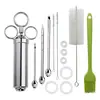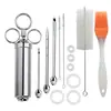 Escova de silicone com escova de limpeza Três agulhas de aço inoxidável tempero peru bife seringa 2OZ peru agulha cozinha ferramentas fábrica vendas diretas Taobao comércio exterior exportação Amazon alibaba AliExpress fornecimento