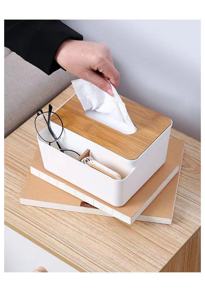 Caixa de lenços de papel de mesa, caixa de papel com ventosa para sala de estar, mesa de centro, caixa de armazenamento com controle remoto, rolo de papel para guardanapos, luz, caixa de luxo com ventosa
