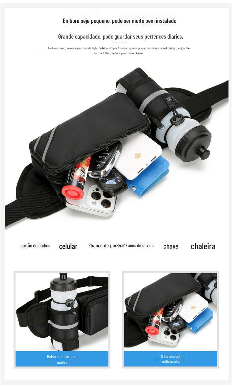 Bolsa de Cintura para Garrafa de Água Esportiva Multifuncional Bolsa de Corrida Impermeável para Homens e Mulheres Equipamento de Fitness ao Ar Livre Mochila para Caminhada e Montanhismo