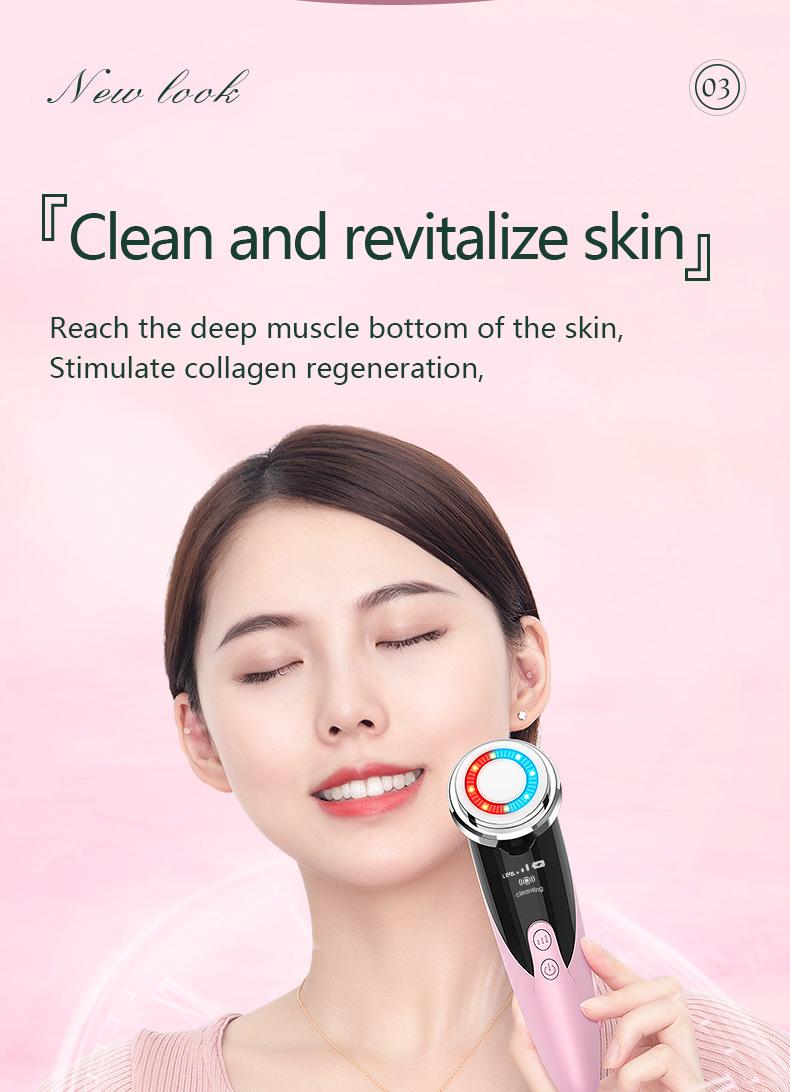Dispositivo de Beleza para Limpeza Facial, Massageador de Fótons, Lifting Ems, Amaciador de Pele, Limpador Facial, Dispositivo de Exportação/Importação de Calor Quente