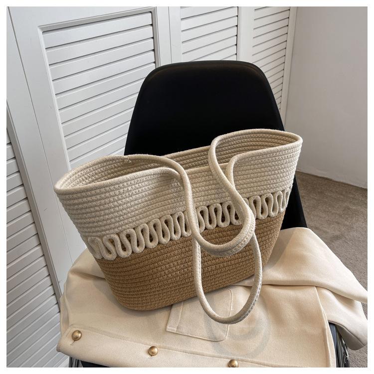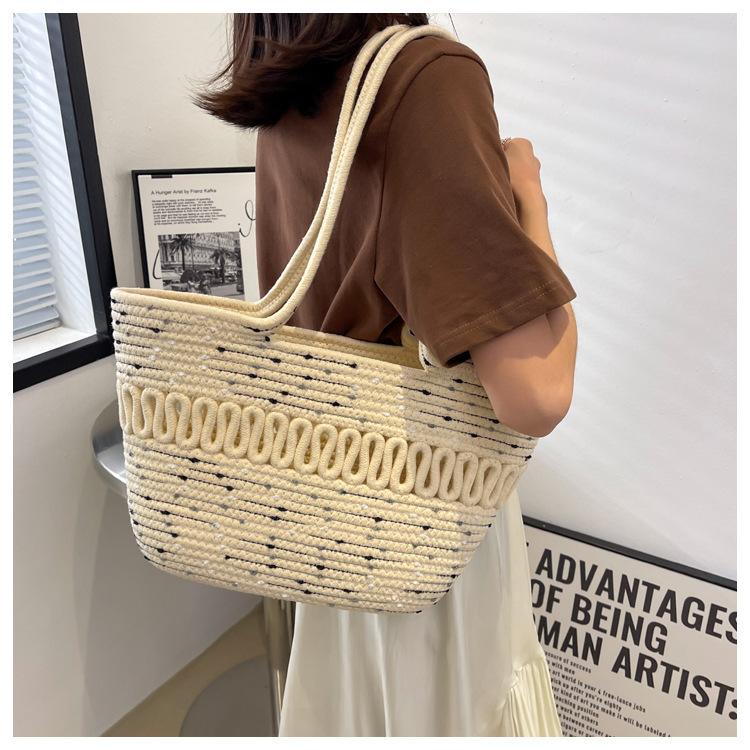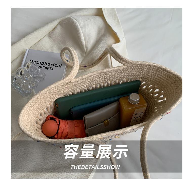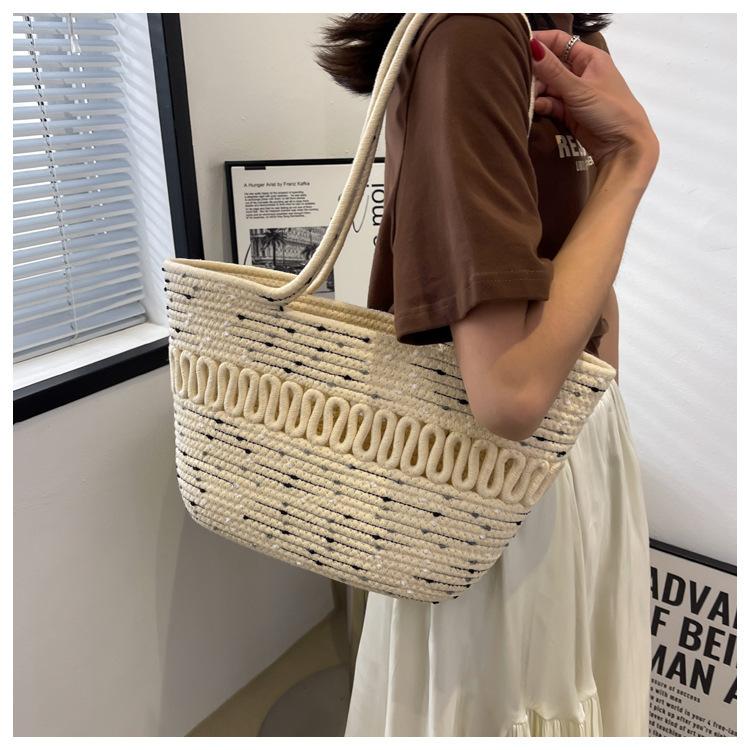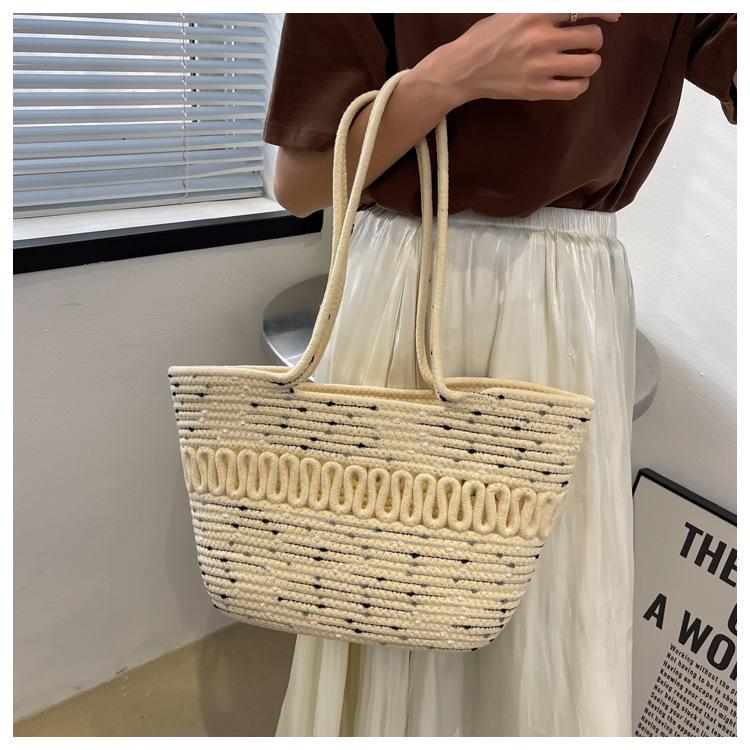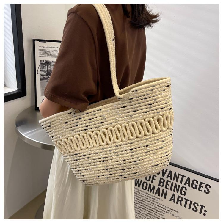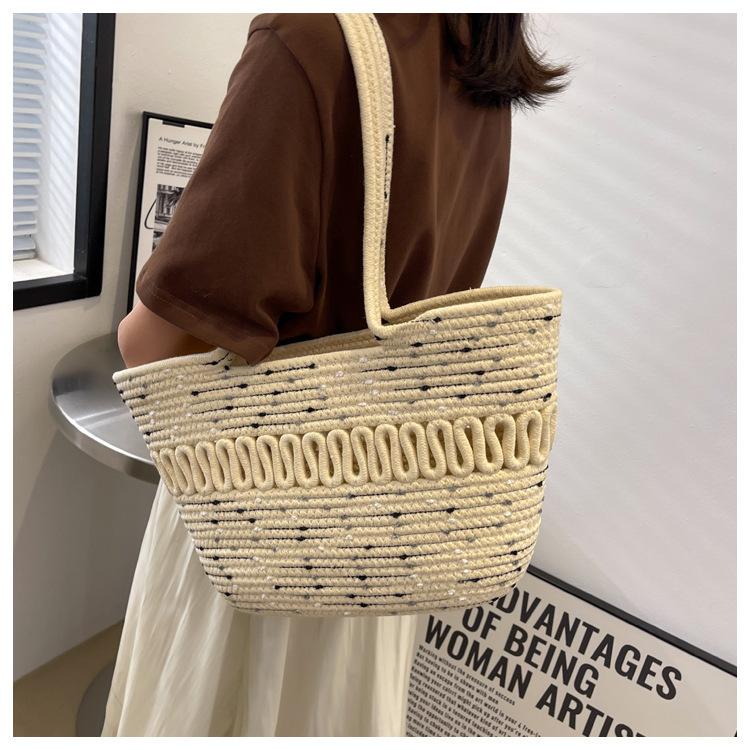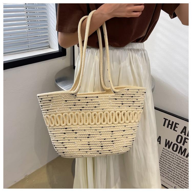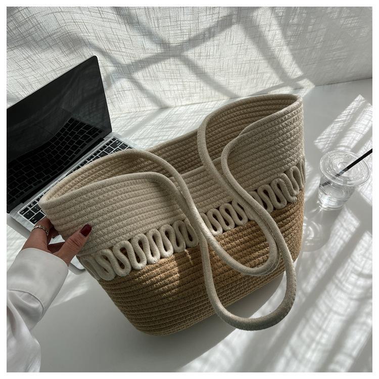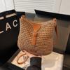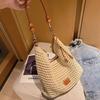 Bolsa de Ombro Vazada Bolsa de Palha Verão Nova Verão Grande Capacidade Bolsa de Palha Francesa Férias à Beira-Mar Bolsa de Praia para Mulheres