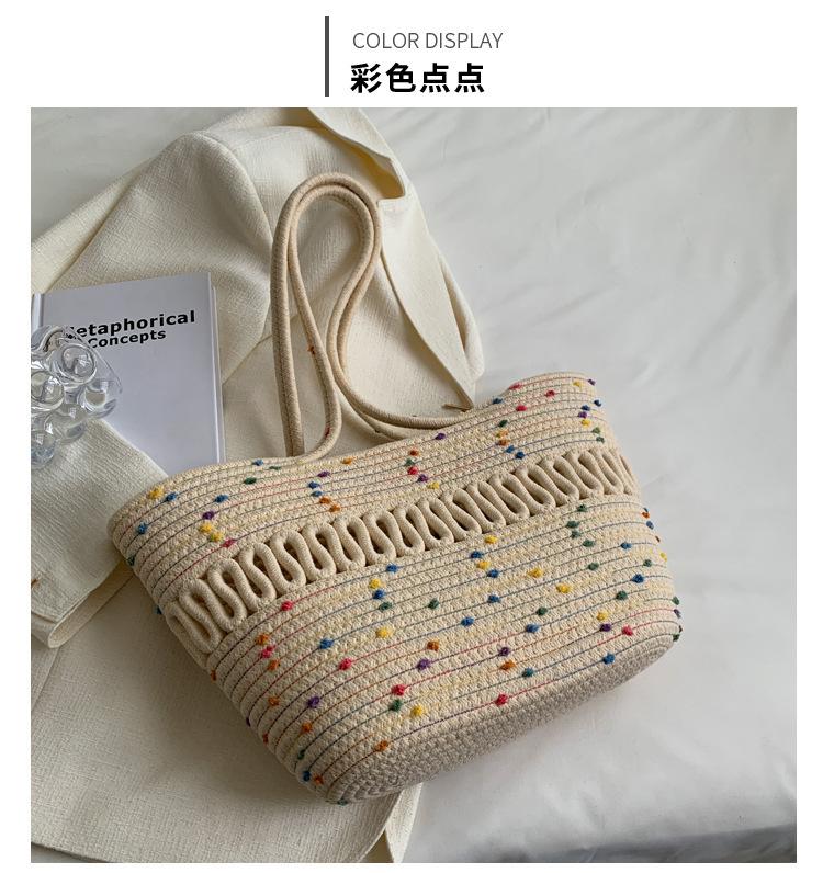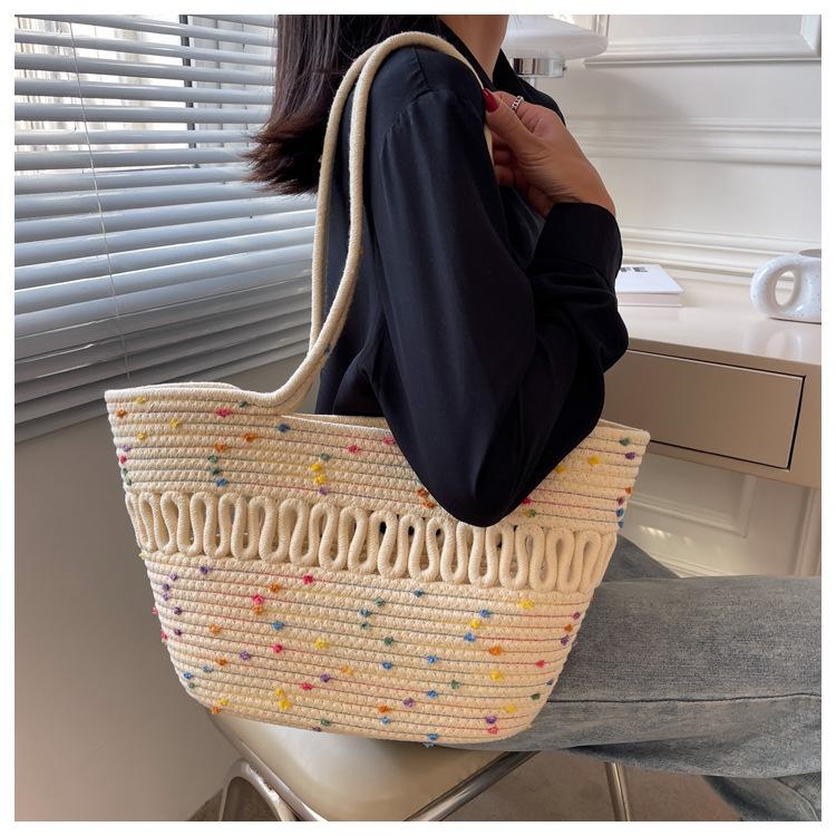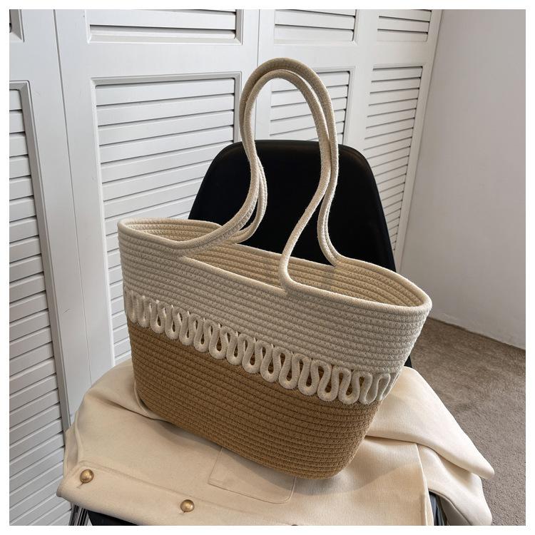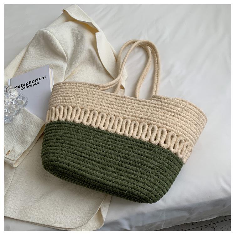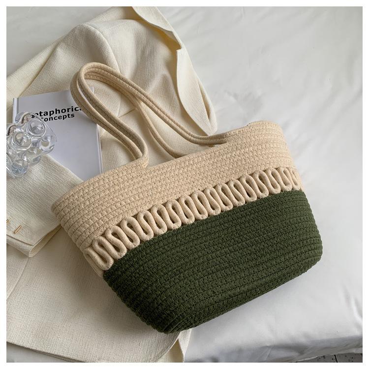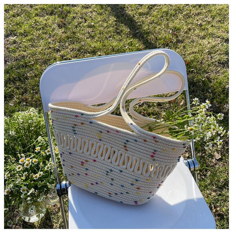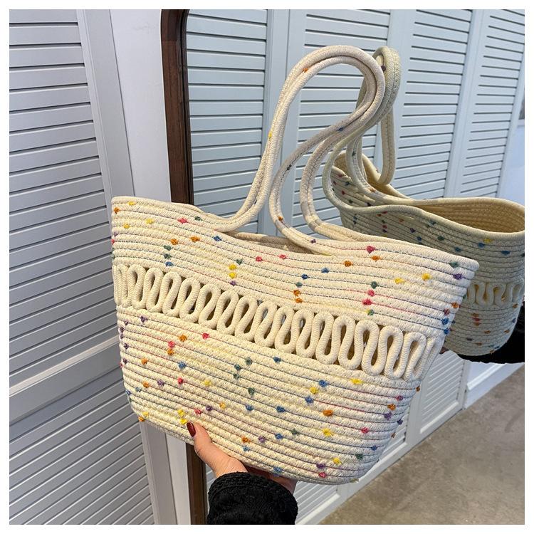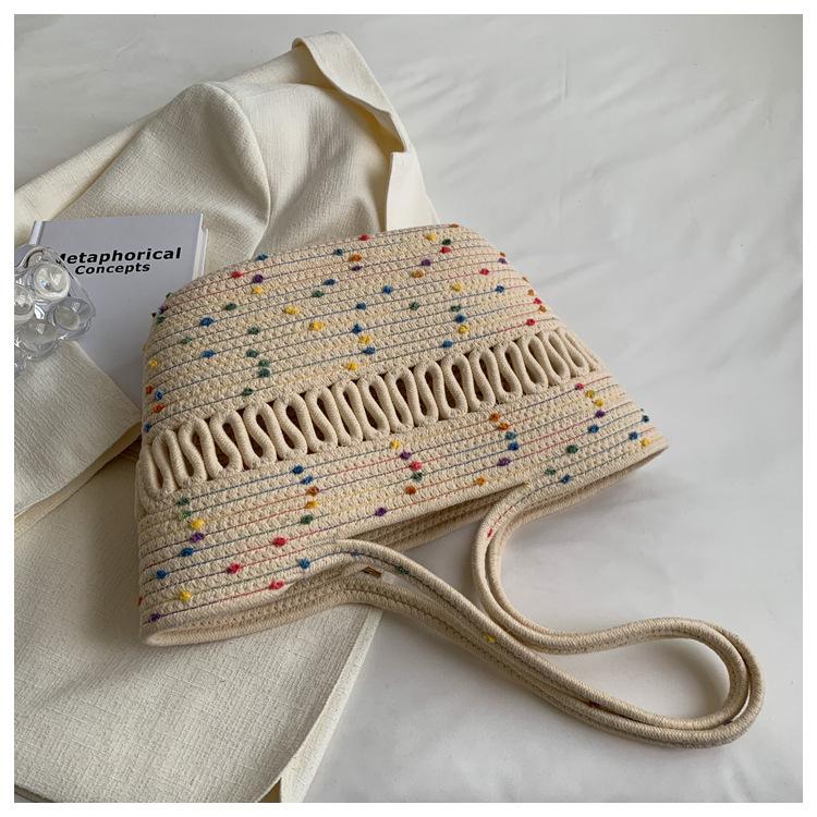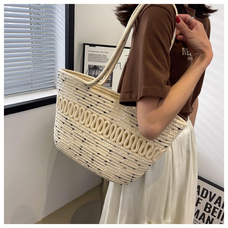 Bolsa de Ombro Vazada Bolsa de Palha Verão Nova Verão Grande Capacidade Bolsa de Palha Francesa Férias à Beira-Mar Bolsa de Praia para Mulheres