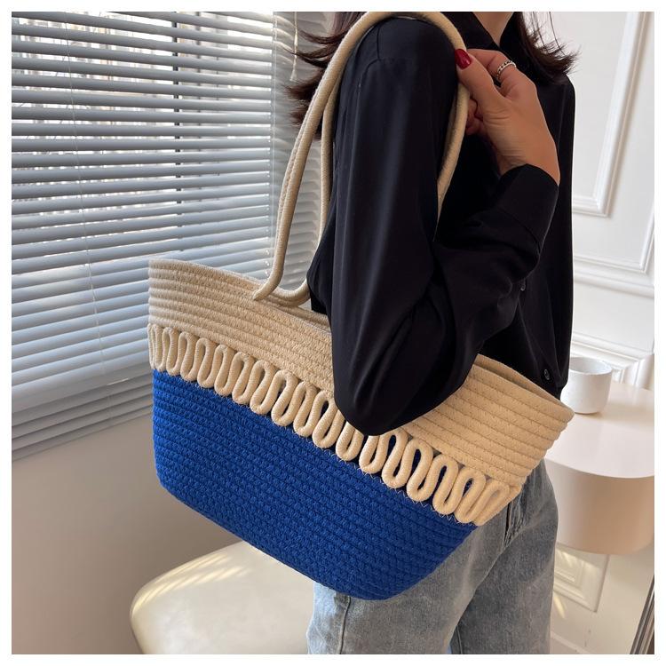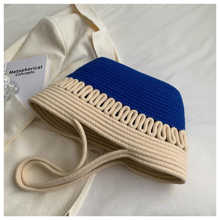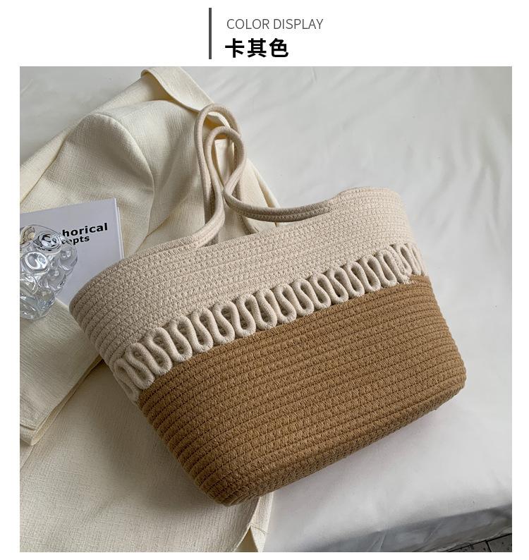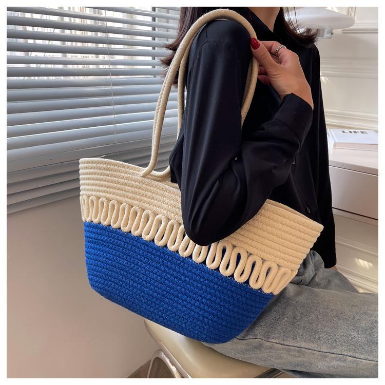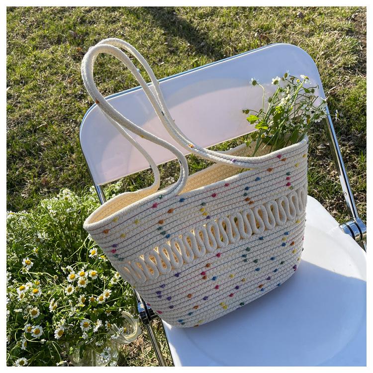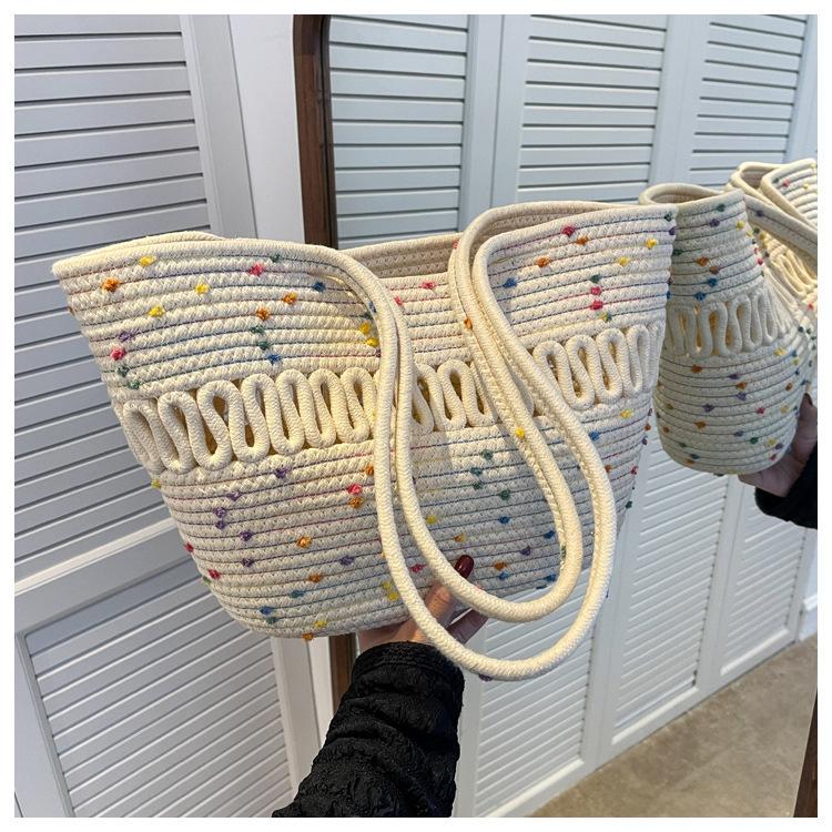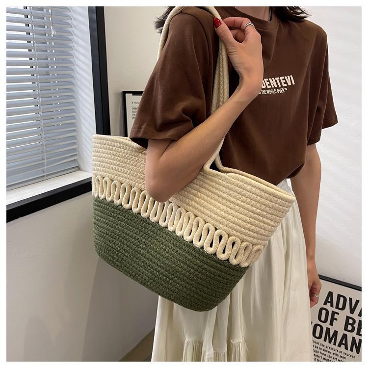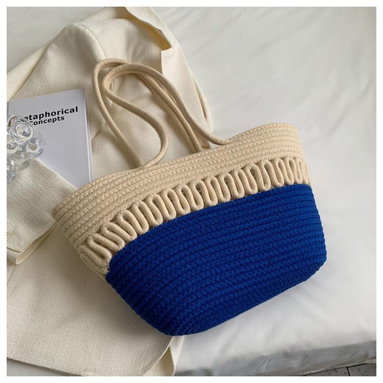 Bolsa de Ombro Vazada Bolsa de Palha Verão Nova Verão Grande Capacidade Bolsa de Palha Francesa Férias à Beira-Mar Bolsa de Praia para Mulheres