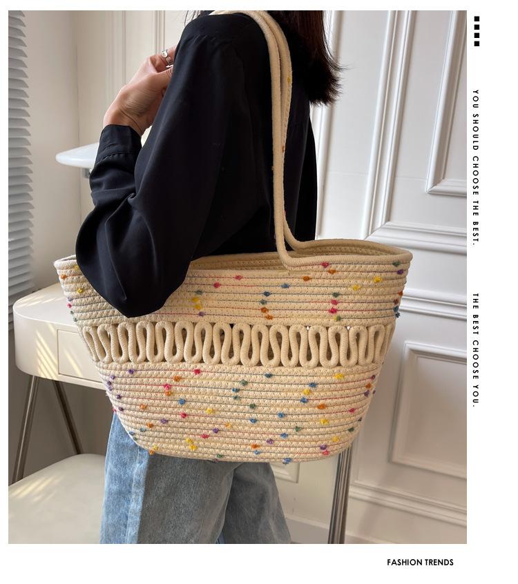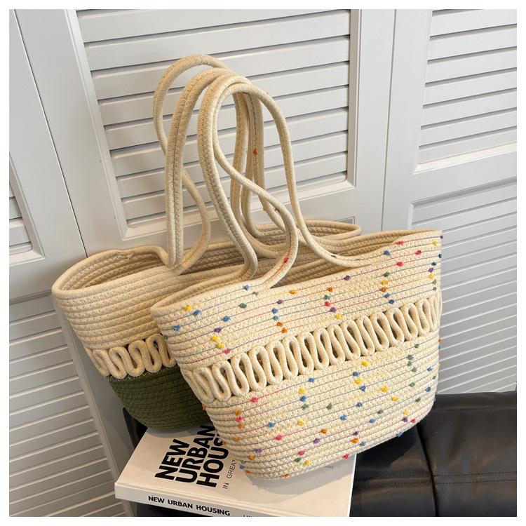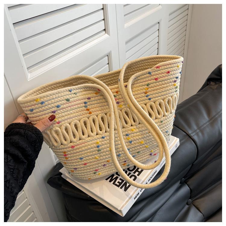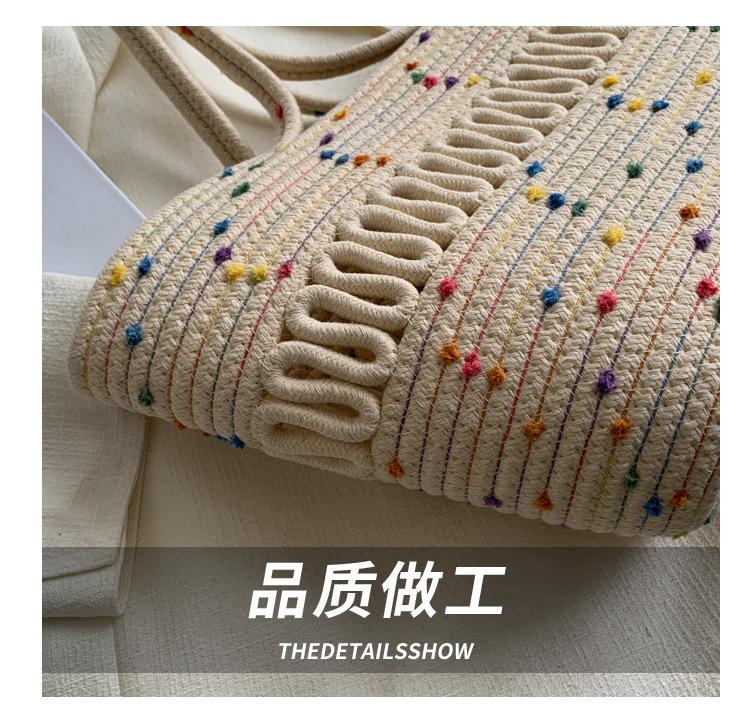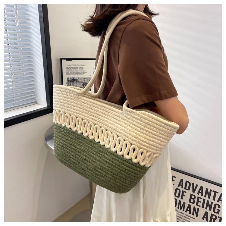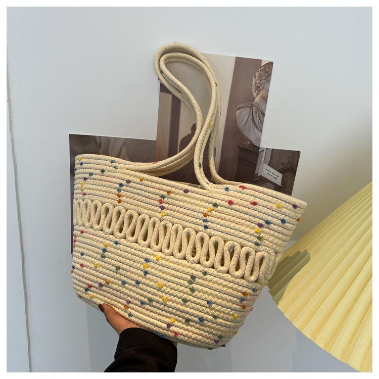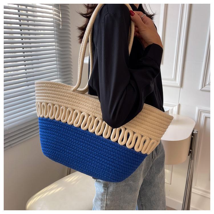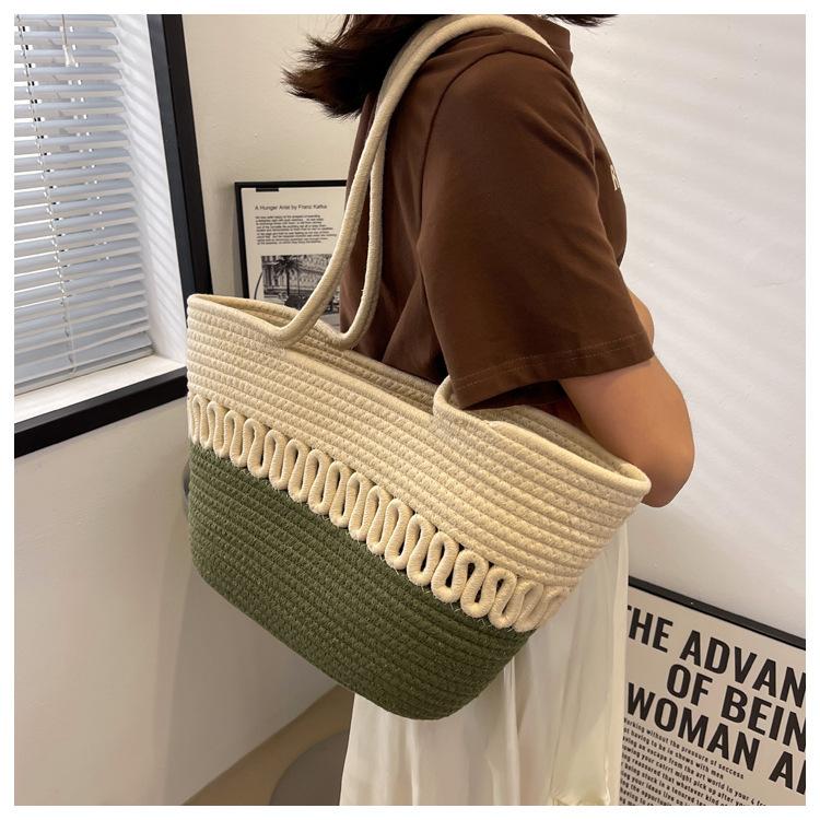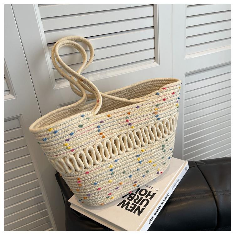 Bolsa de Ombro Vazada Bolsa de Palha Verão Nova Verão Grande Capacidade Bolsa de Palha Francesa Férias à Beira-Mar Bolsa de Praia para Mulheres
