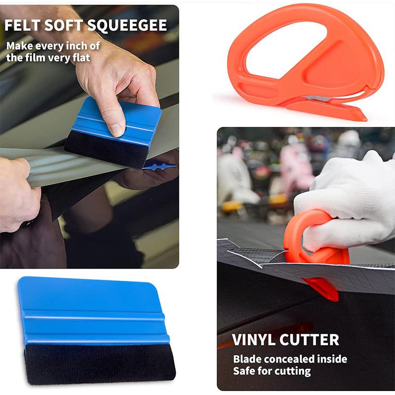 Kit de ferramentas para película de janela de carro com 15 peças, raspador de feltro, faca retrátil e lâmina de encaixe