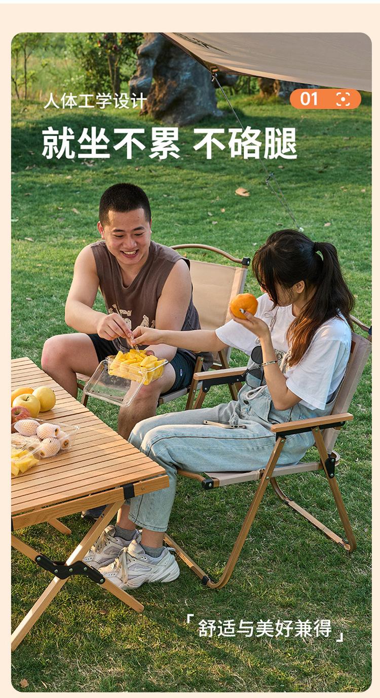 [Large wood grain chair frame] khaki Oxford cloth