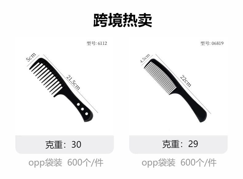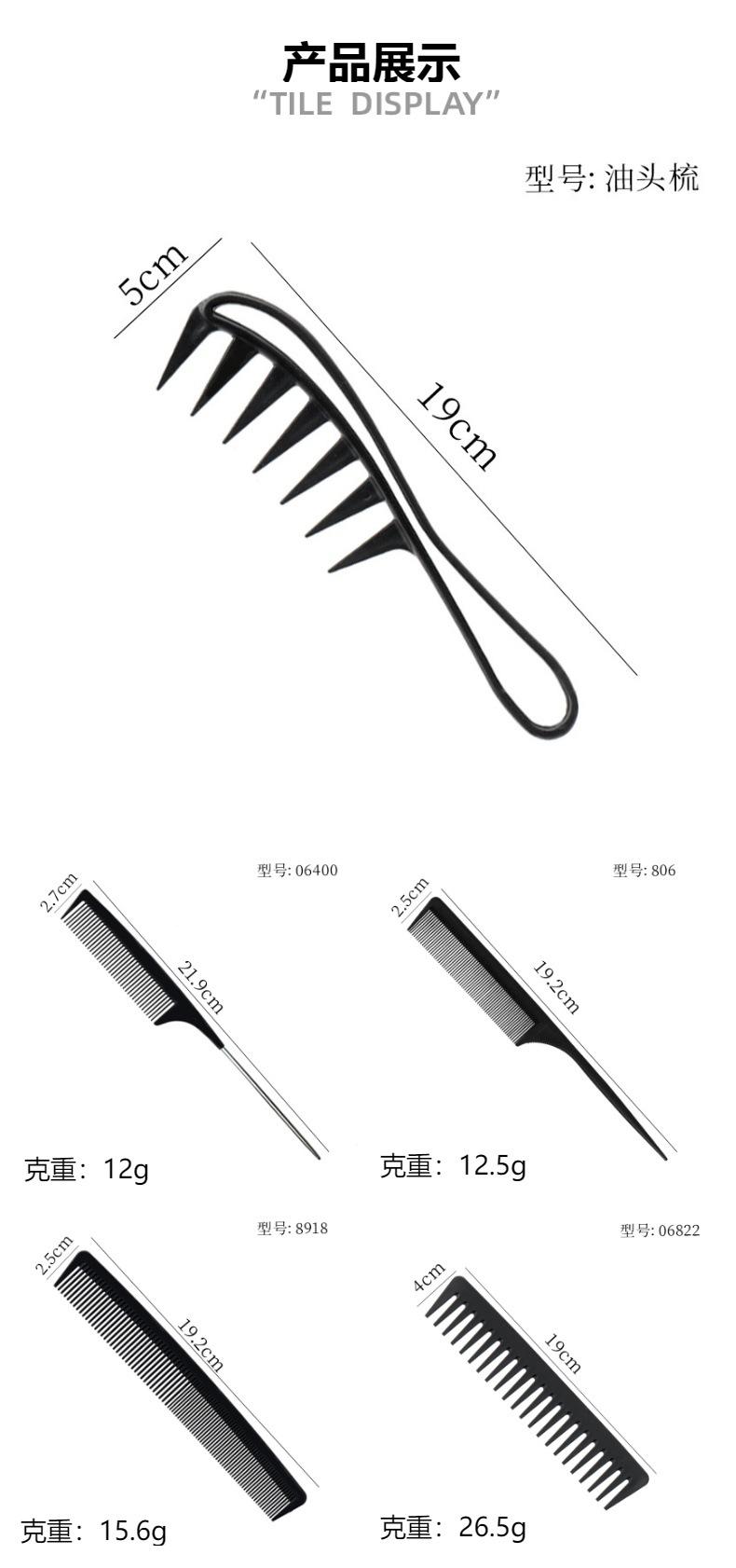 Venda quente transfronteiriça Alta temperatura resistente antiderrapante plástico aço agulha ponta pente de cauda grande dente largo pente de óleo terno pente atacado