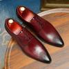 Sapatos de couro do casamento do noivo dos homens vestido de negócios couro britânico apontado Brock homens bloco de cor do casamento sapatos de couro dos homens