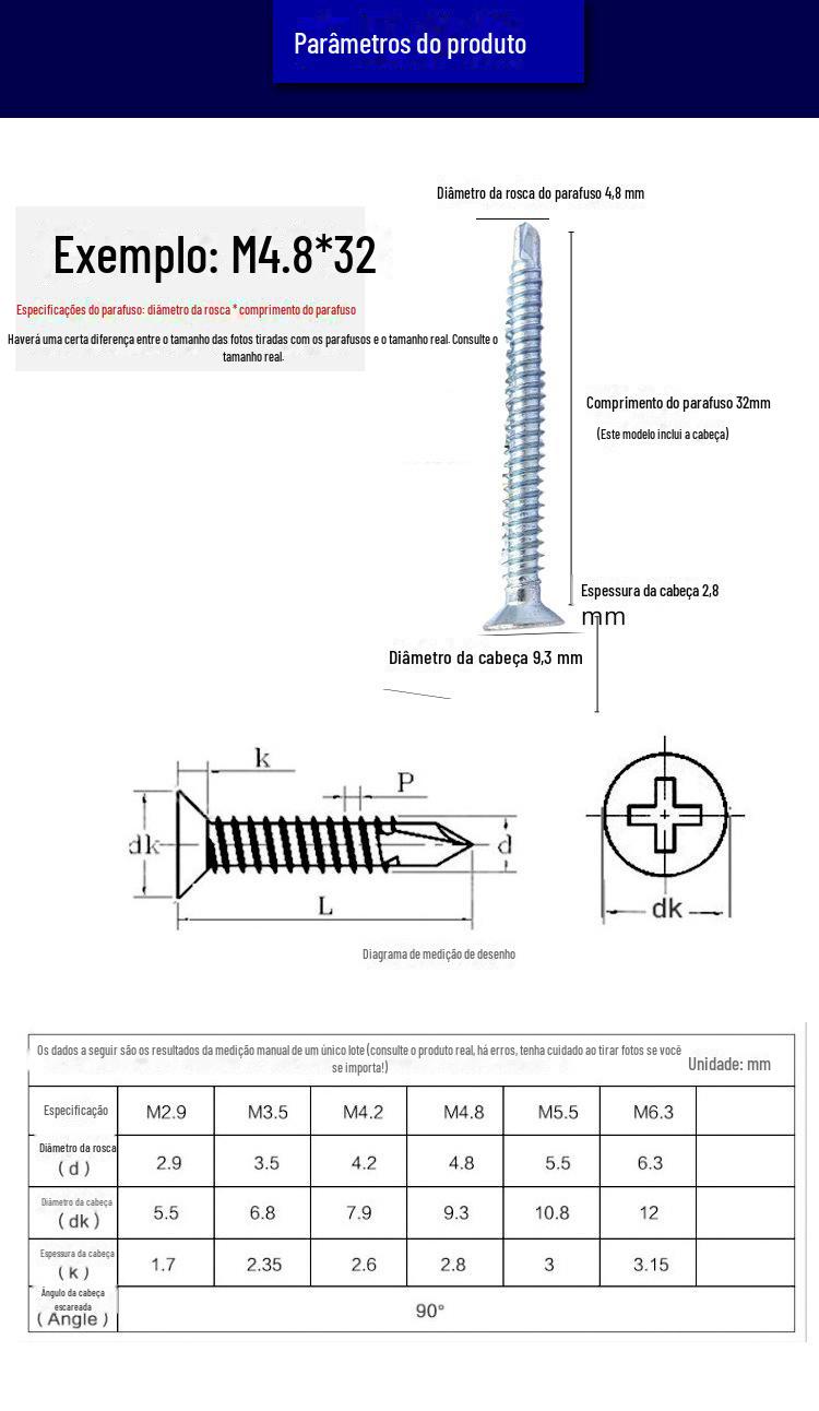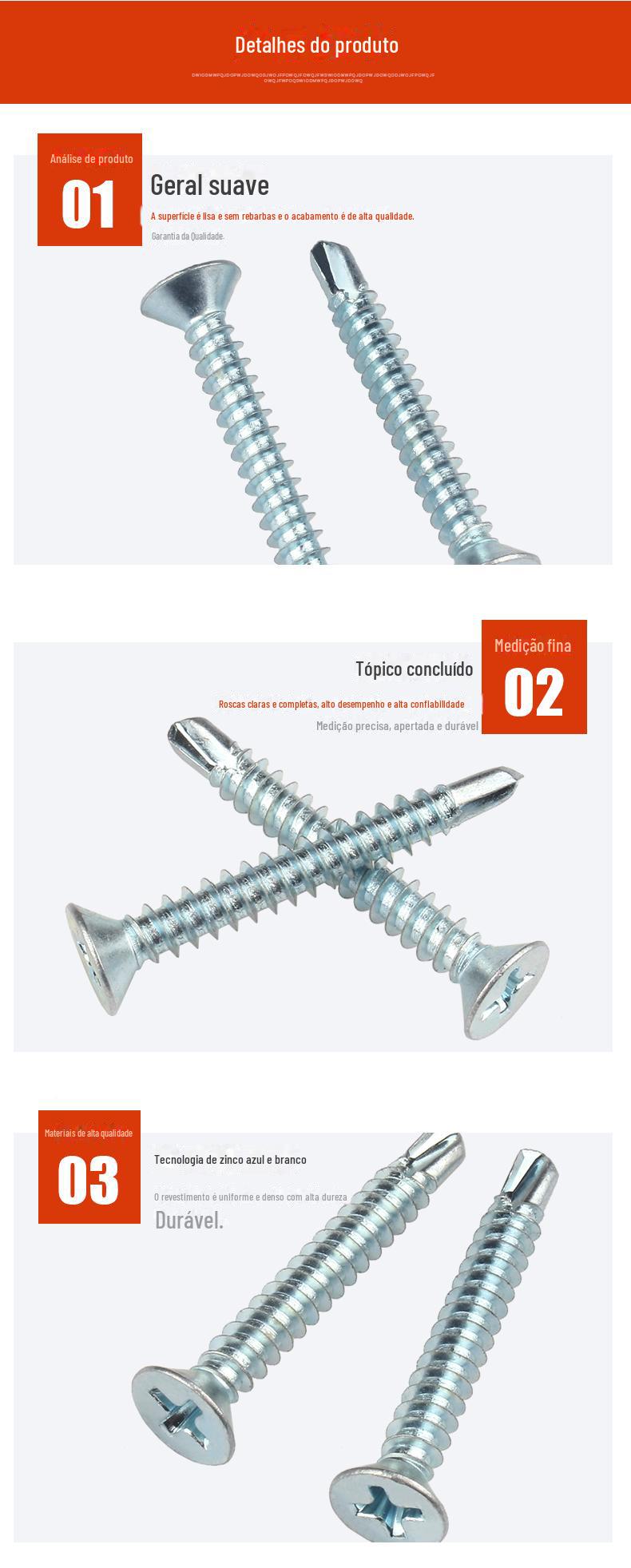 | Parafusos auto-roscantes hexagonais de cabeça escareada em aço inoxidável 304 M2M2.3M2.6M3M4M5M6M8 |