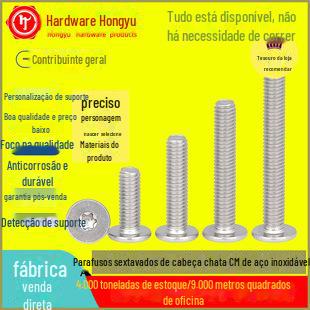 | Parafusos torx hexagonais de cabeça chata cm de aço inoxidável 304, parafusos grandes de fio de máquina plana m2/m3/m4/m5/m6/m8 |