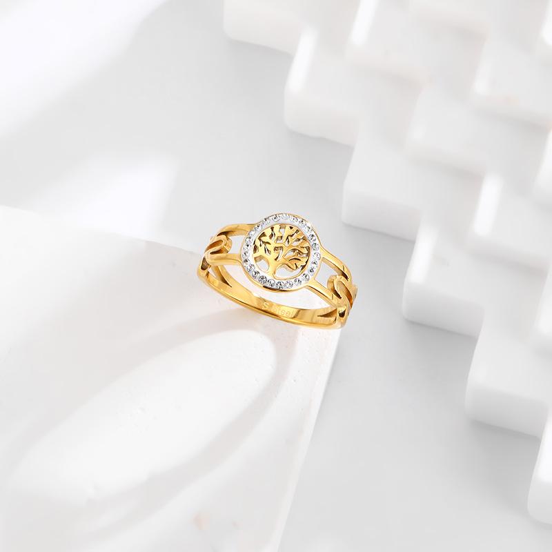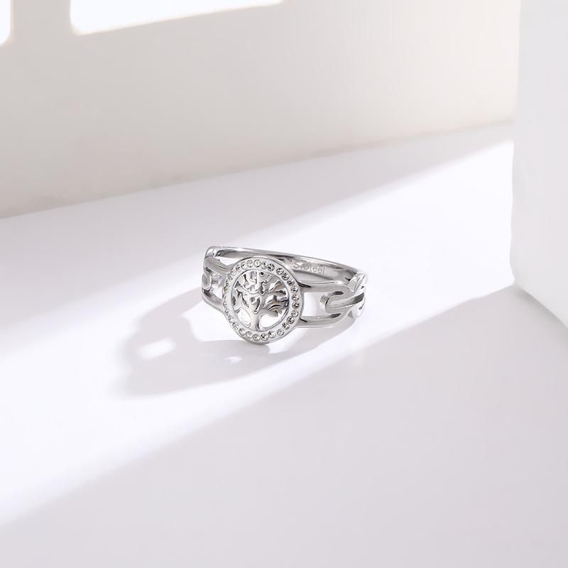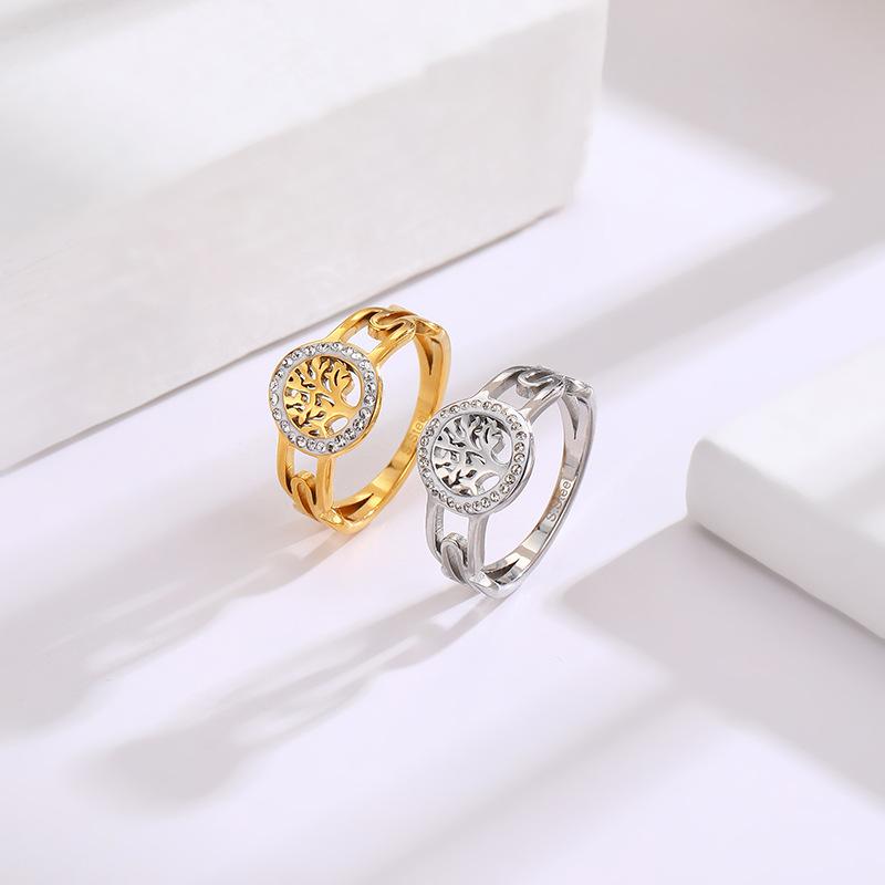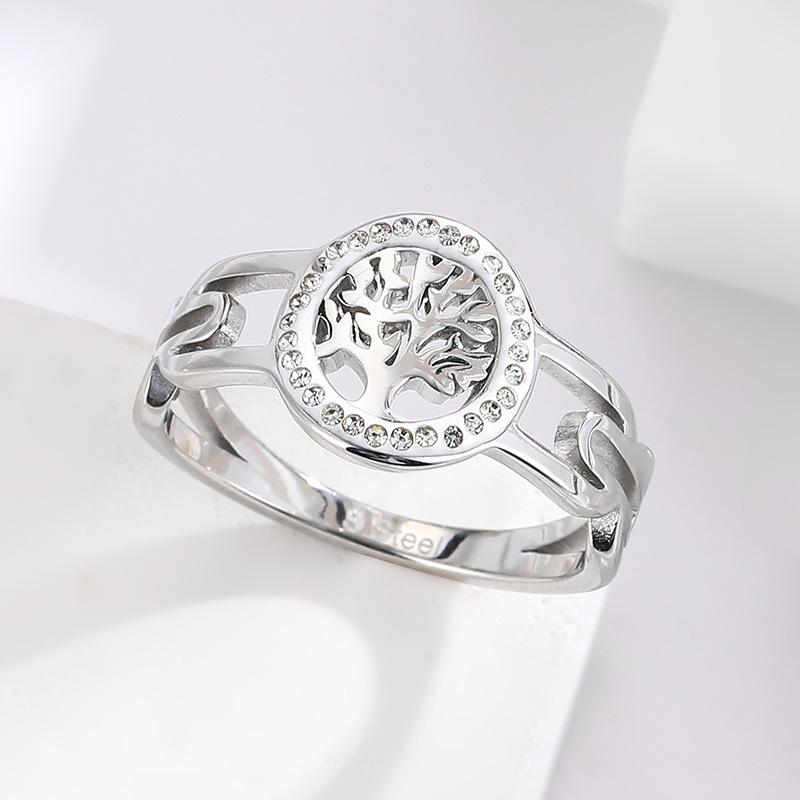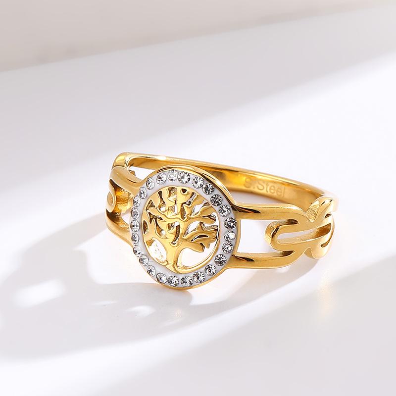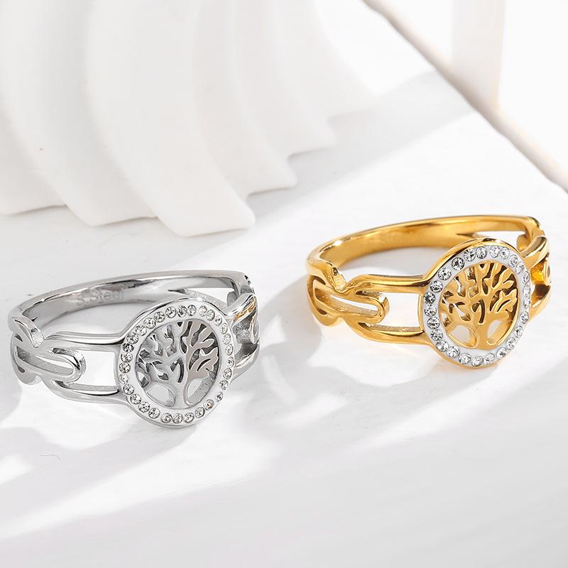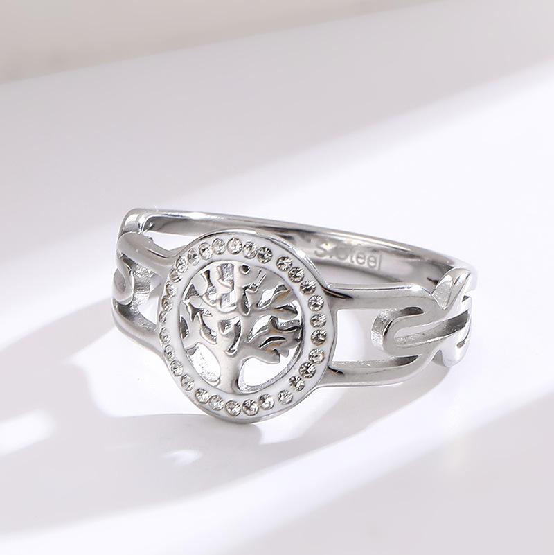 Comércio eletrônico transfronteiriço fornecer árvore de vida de aço inoxidável anel oco cor retendo moda popular europeu e americano