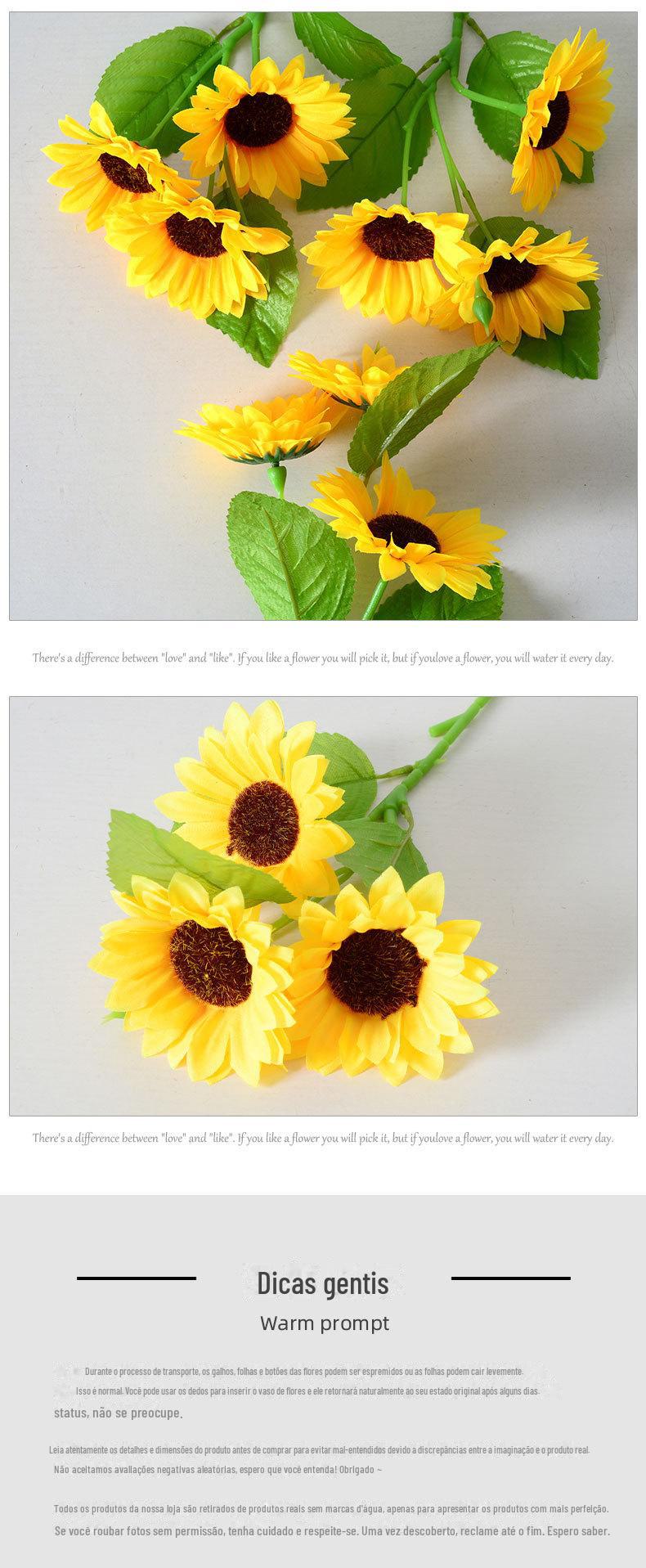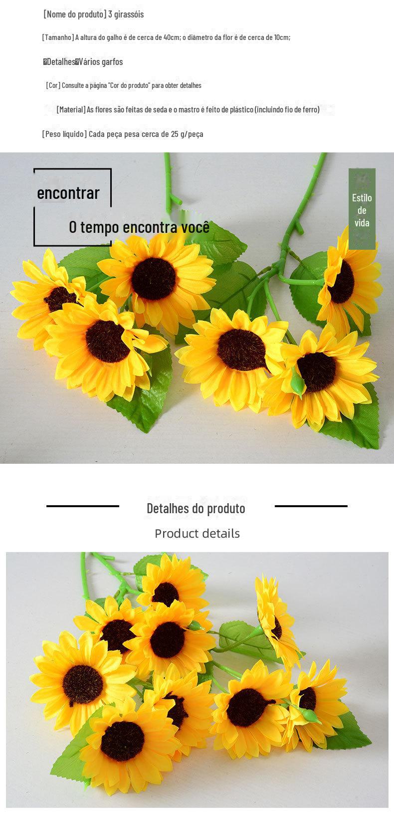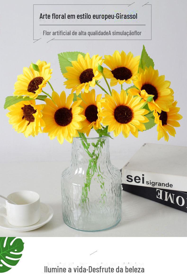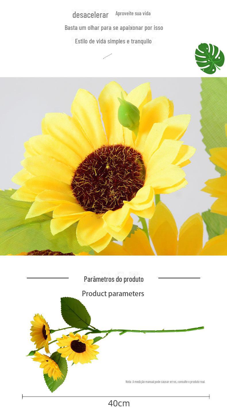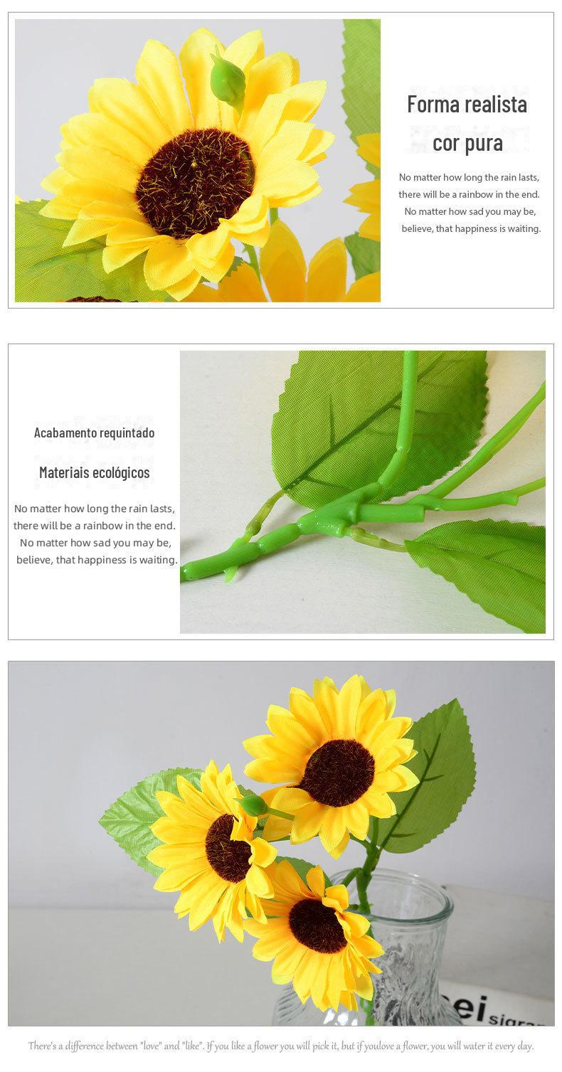 Artificial 3 cabeça girassol flor artificial tecido de seda buquê de sol decoração de casa fotografia adereços arranjo de flores ornamentos atacado