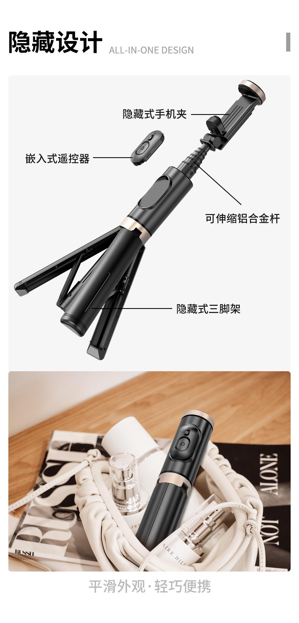 | Tipo oculto integrado Q12Bastão de selfie com tripé Bluetooth reforçado (pólo de liga de alumínio) | |||
