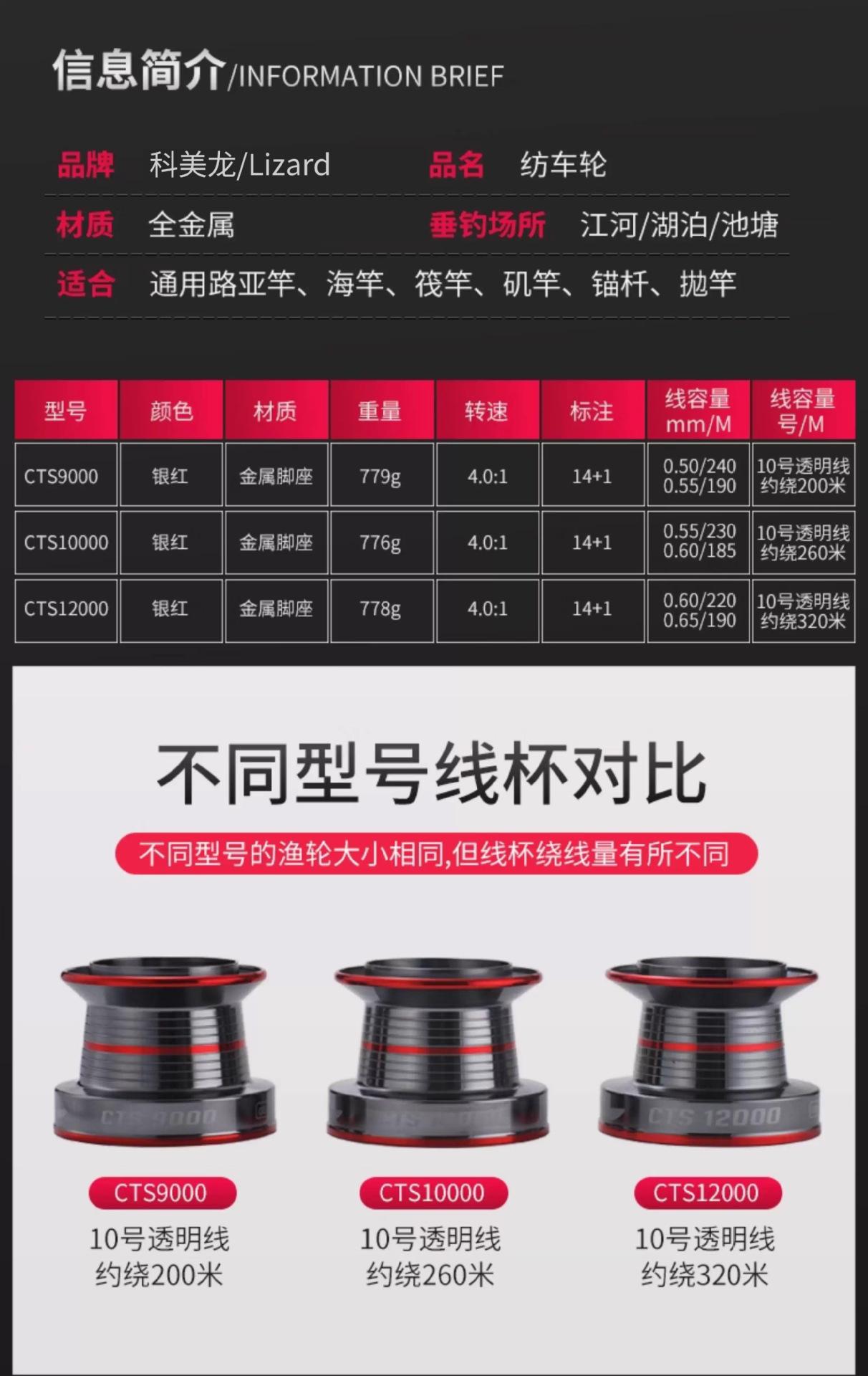 LIZARD 9000/10000/12000 tamanho carretel de metal completo girando grande carretel de pesca marítima Jigging corrico fundição de tiro longo para carpa água salgada