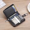 Capa para chaves de couro com padrão de fibra de carbono fosco, multifuncional, com zíper, cor contrastante, porta-chaves de couro de vaca, 2 em 1