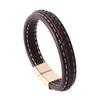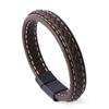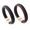 Pulseira masculina europeia e americana transfronteiriça Pulseira de couro tecida retrô personalizada Pulseira de fivela magnética de aço inoxidável Pulseira de mão de casal
