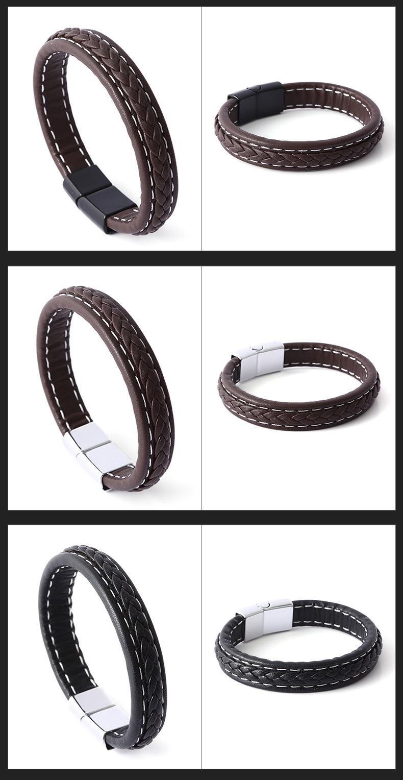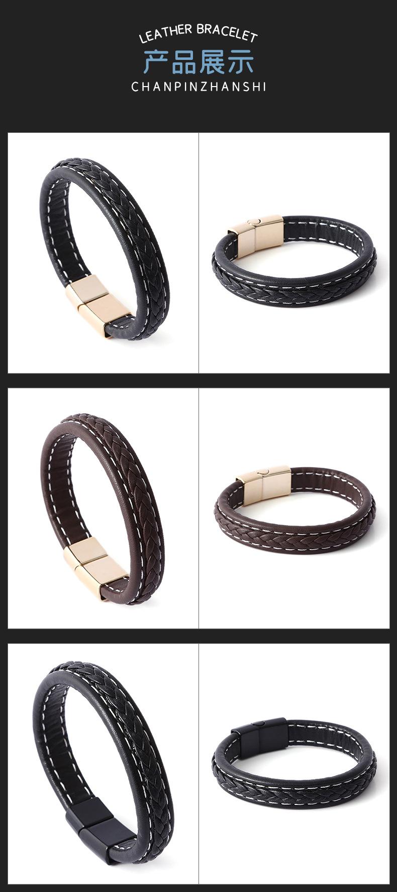 Compre Pulseira masculina europeia e americana transfronteiriça Pulseira de couro tecida retrô personalizada Pulseira de fivela magnética de aço inoxidável Pulseira de mão de casal no atacado no Joom.pro